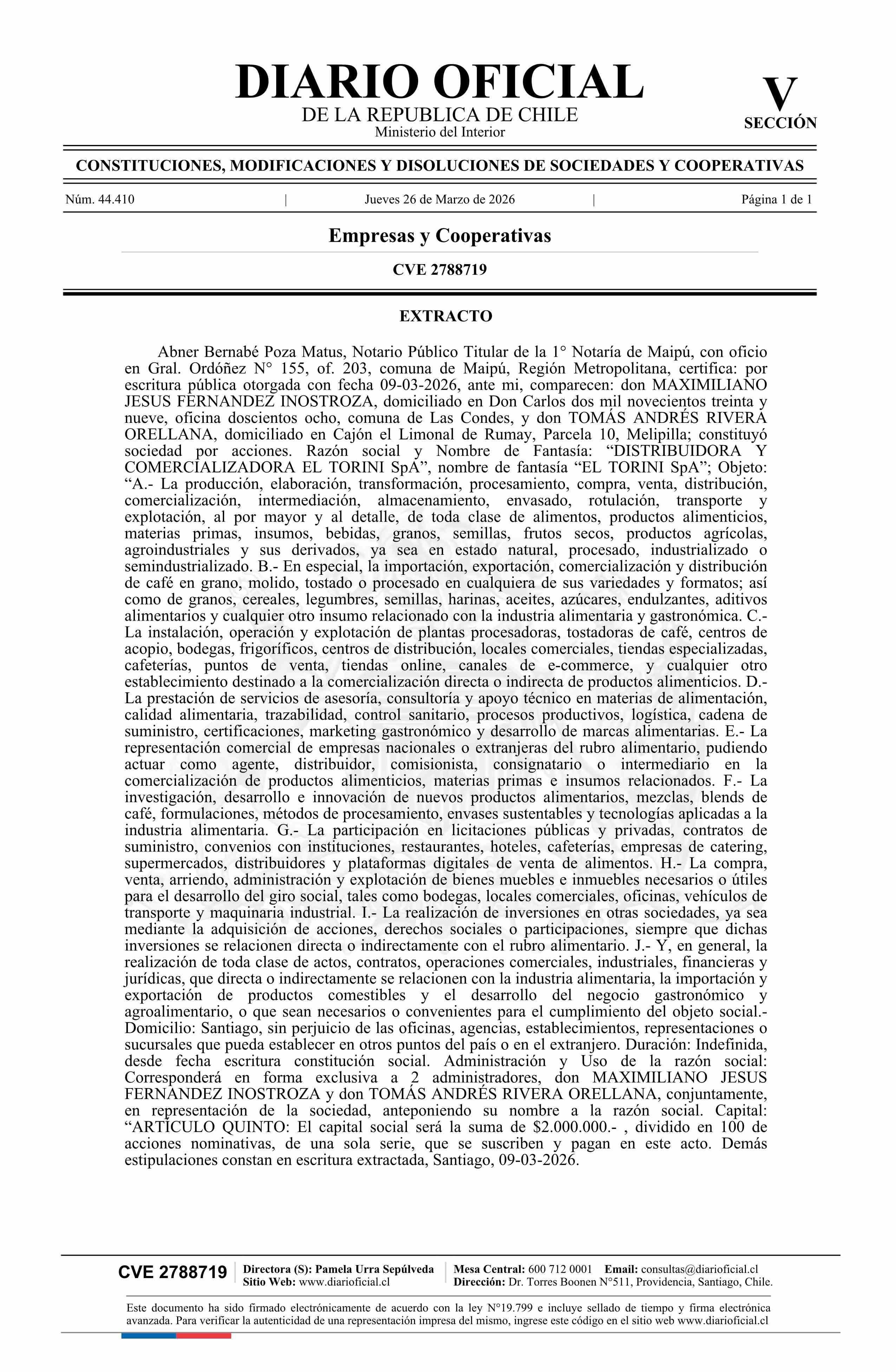 DISTRIBUIDORA Y COMERCIALIZADORA EL TORINI SpA