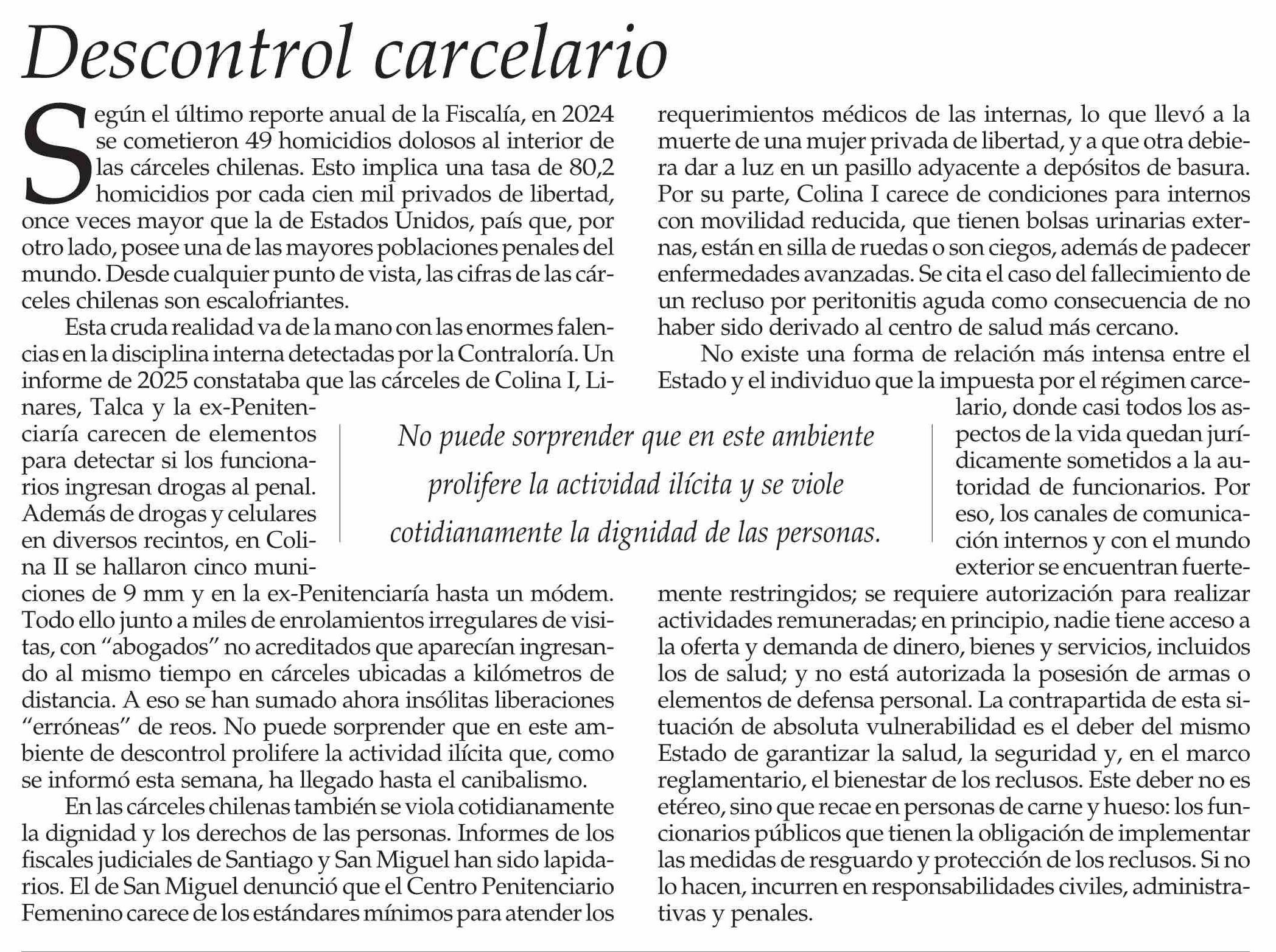 Editorial: Descontrol carcelario