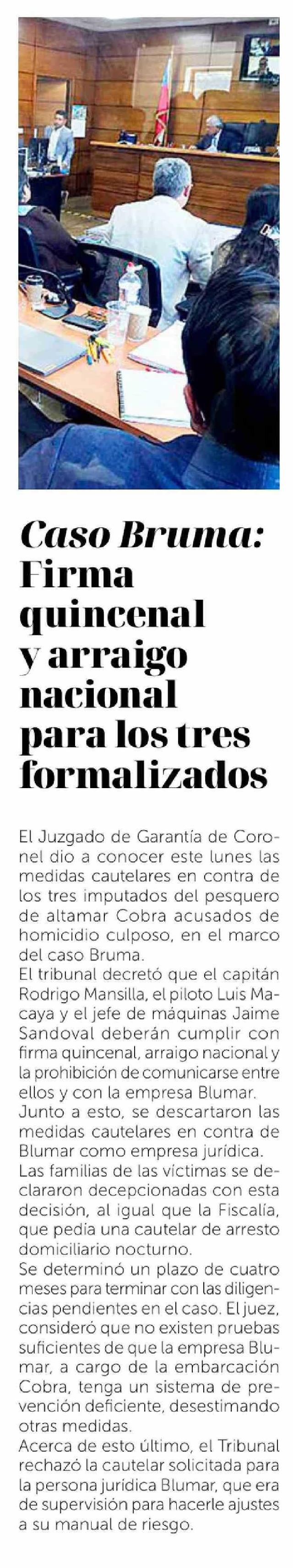 Caso Bruma: Firma quincenal y arraigo nacional para los tres formalizados
