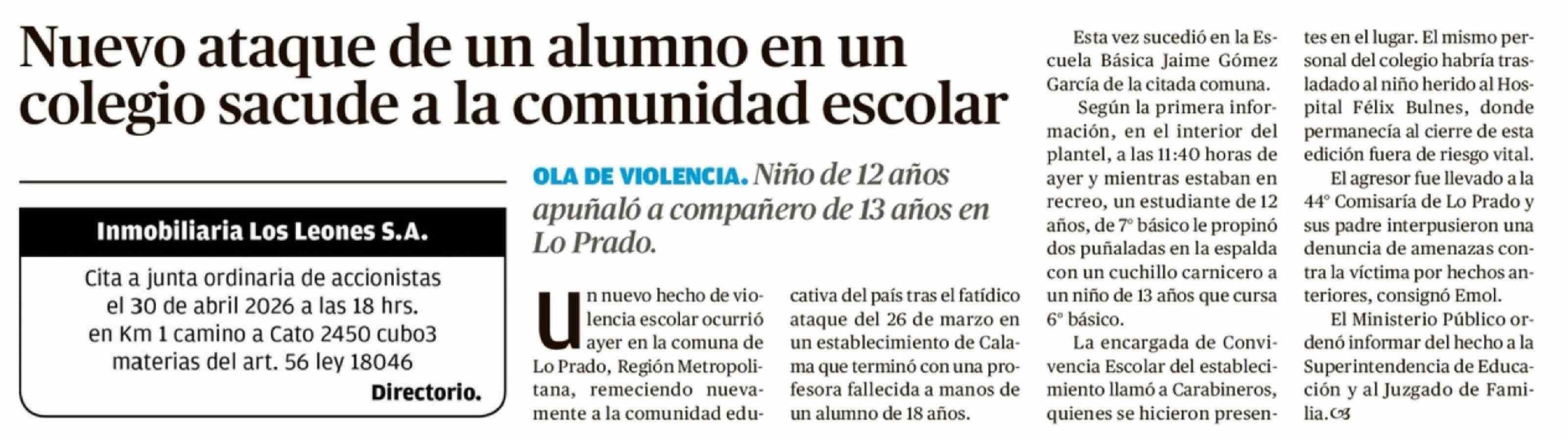 Nuevo ataque de un alumno en un colegio sacude a la comunidad escolar