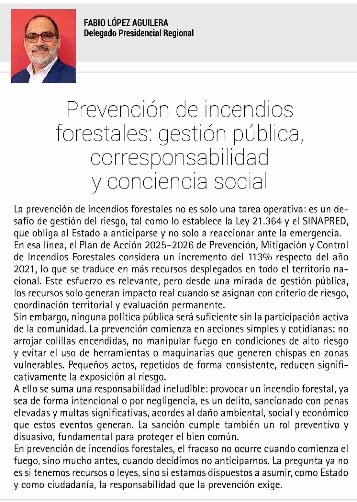 Columnas de Opinión: Prevención de incendios forestales: gestión pública, corresponsabilidad y conciencia social
