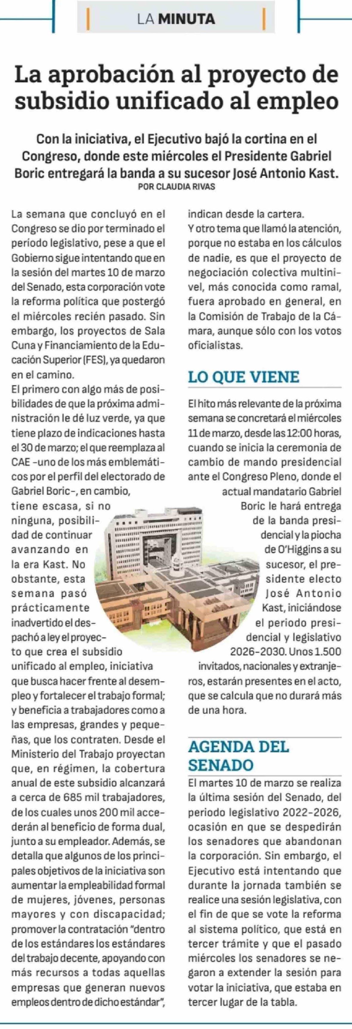 Título: La aprobación al proyecto de subsidio unificado al empleo