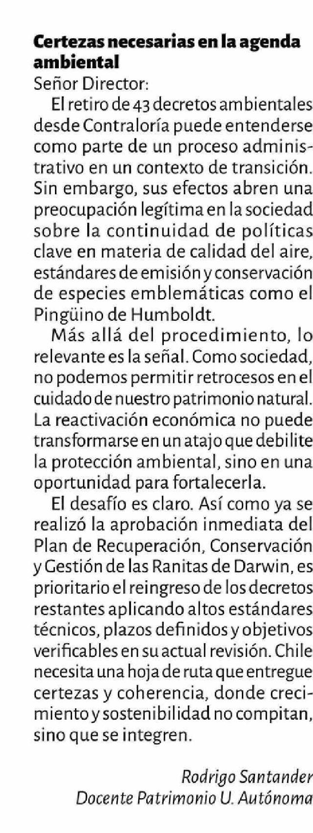 CARTAS: Certezas necesarias en la agenda ambiental