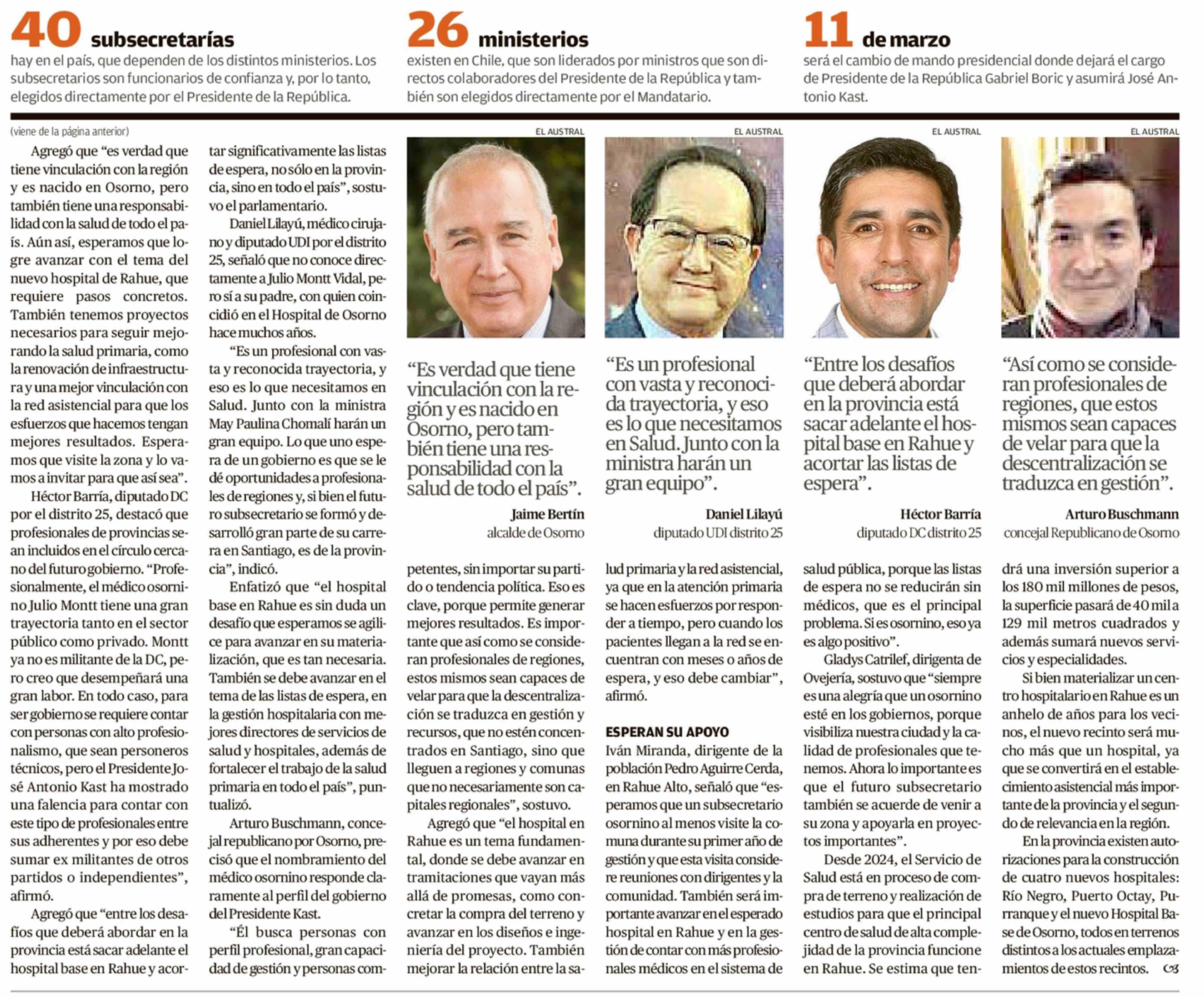 Resurge promesa de un hospital en Rahue con arribo de médico osornino a Subsecretaría de Salud