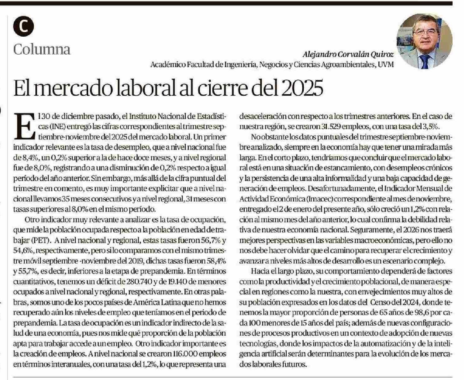 Columnas de Opinión: El mercado laboral al cierre del 2025