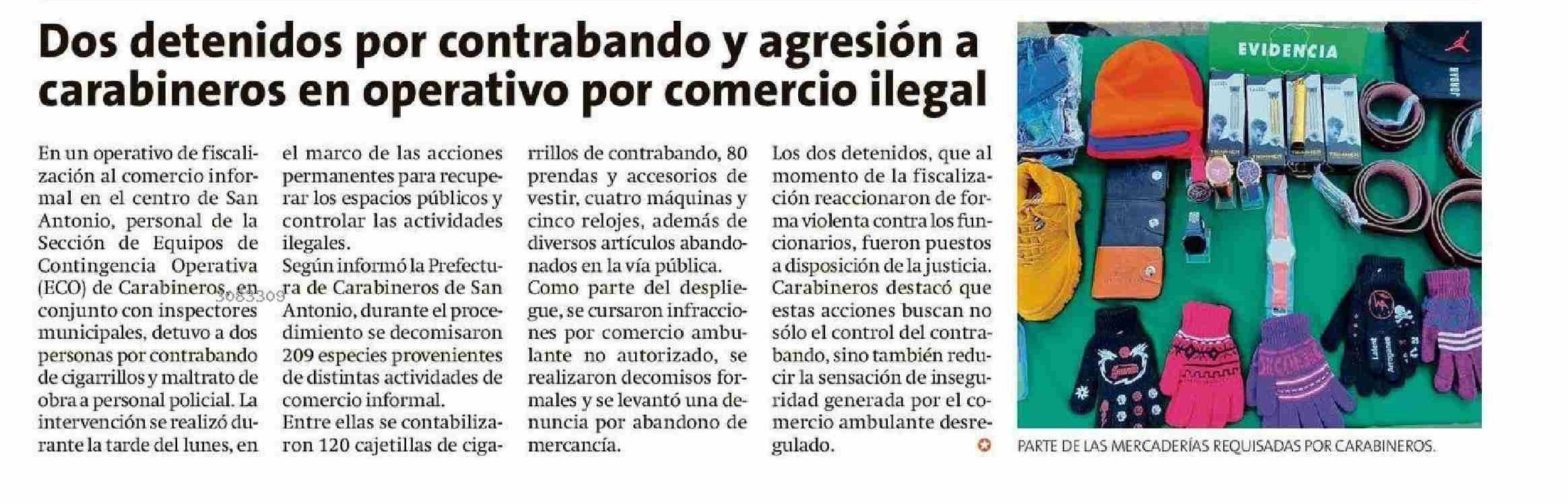 Dos detenidos por contrabando y agresión a carabineros en operativo por comercio ilegal