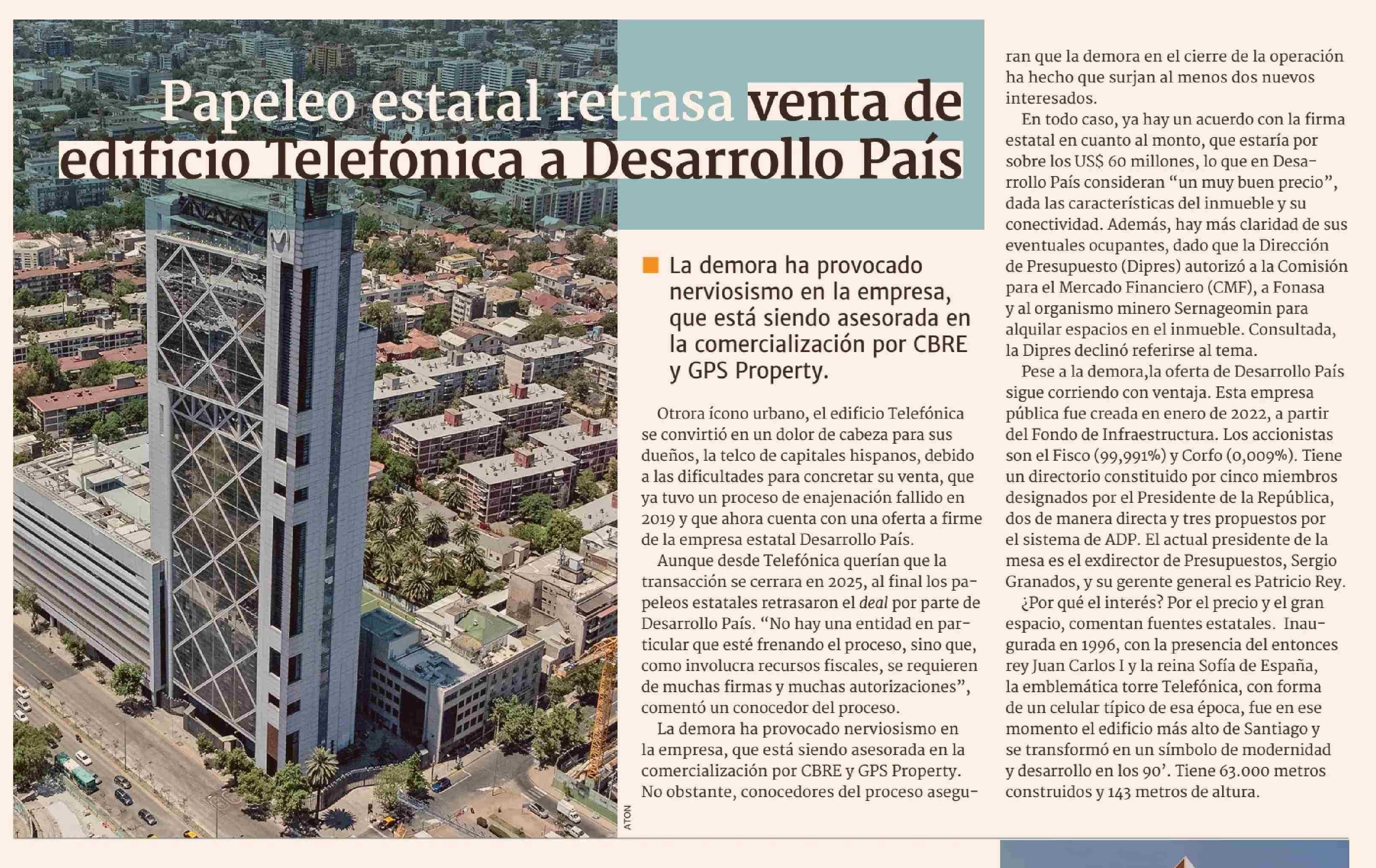 Papeleo estatal retrasa venta de edificio Telefónica a Desarrollo País