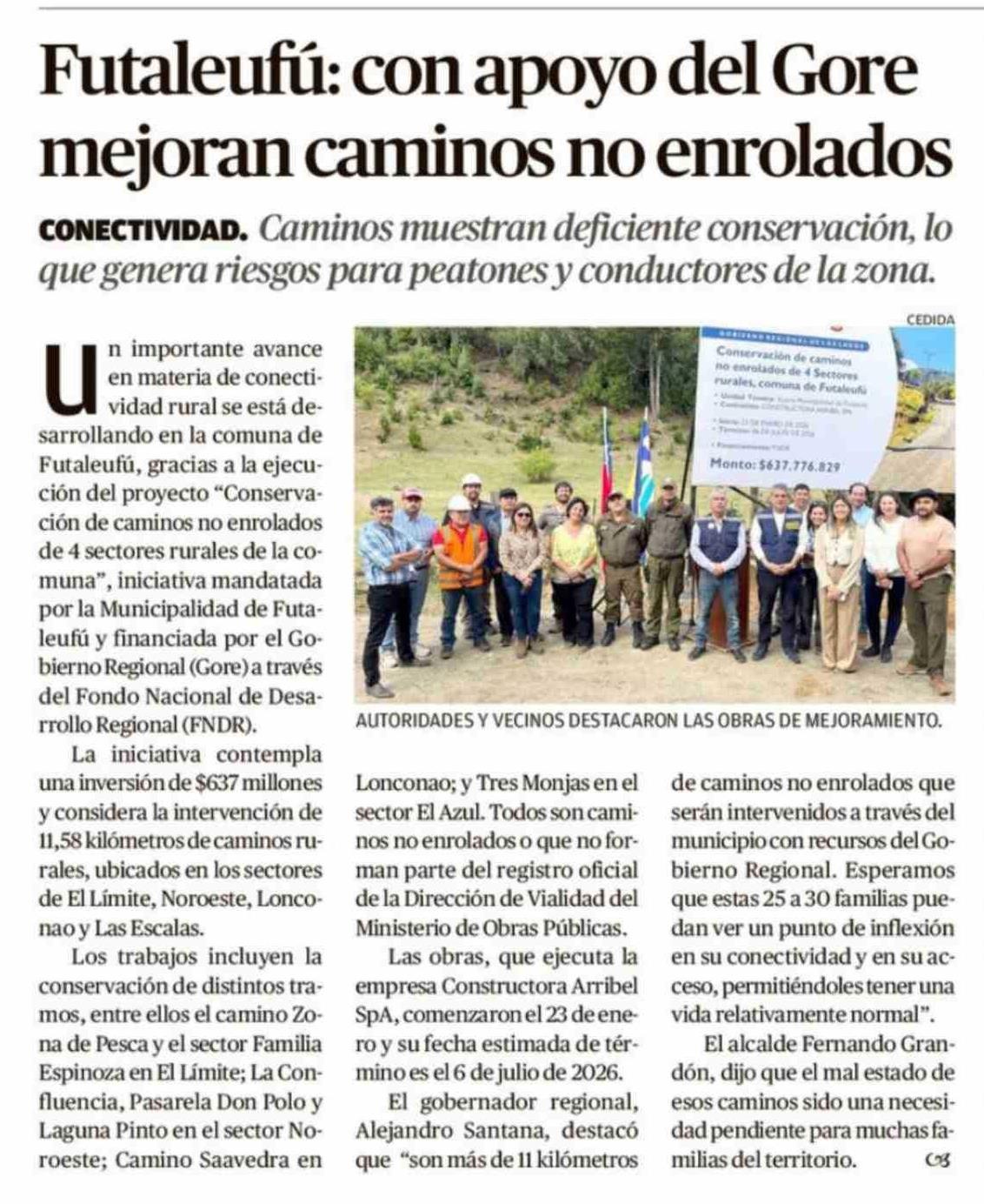 Futaleufú: con apoyo del Gore mejoran caminos no enrolados