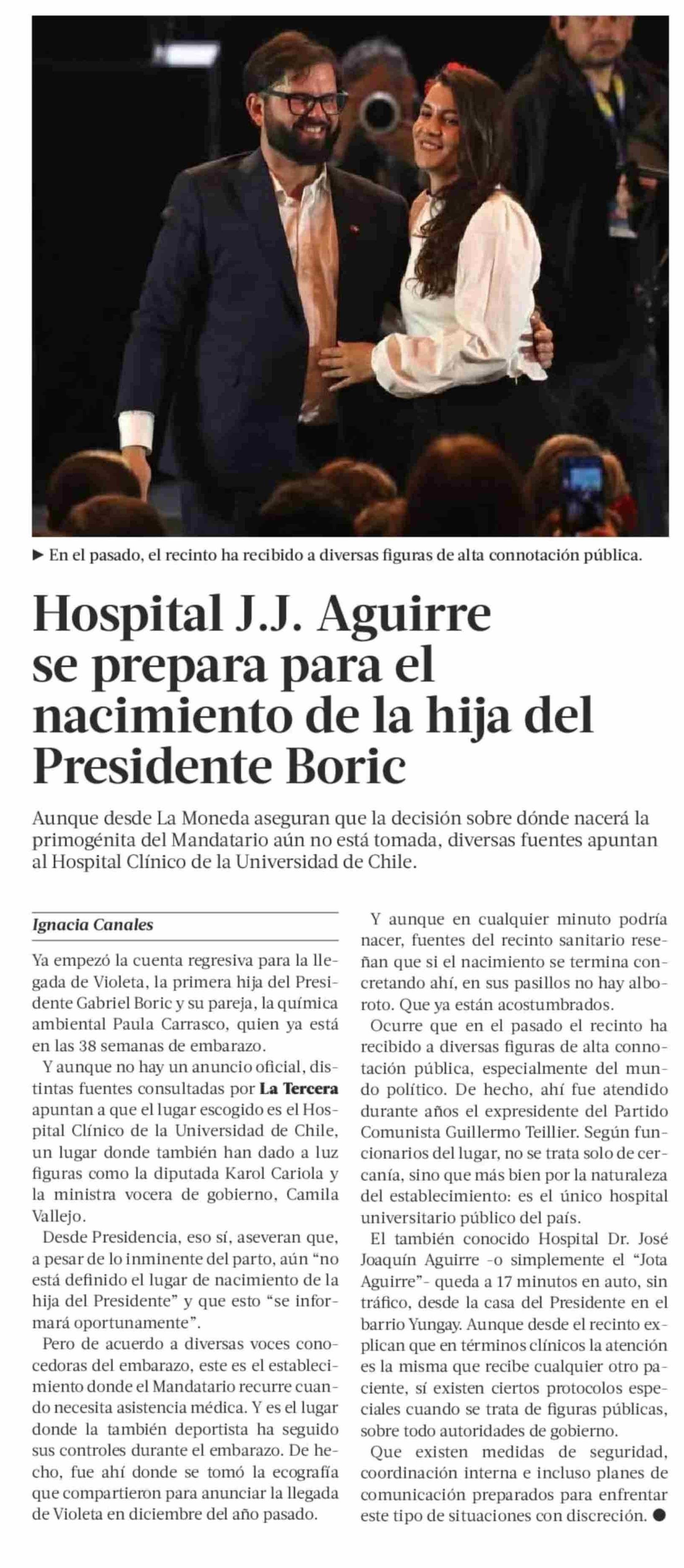 Hospital J.J. Aguirre se prepara para el nacimiento de la hija del Presidente Boric