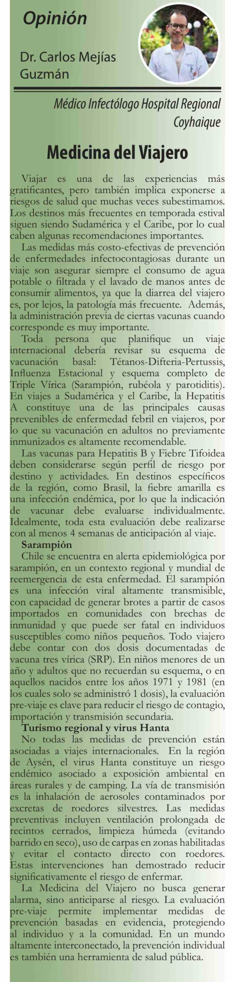 Columnas de Opinión: Medicina del Viajero