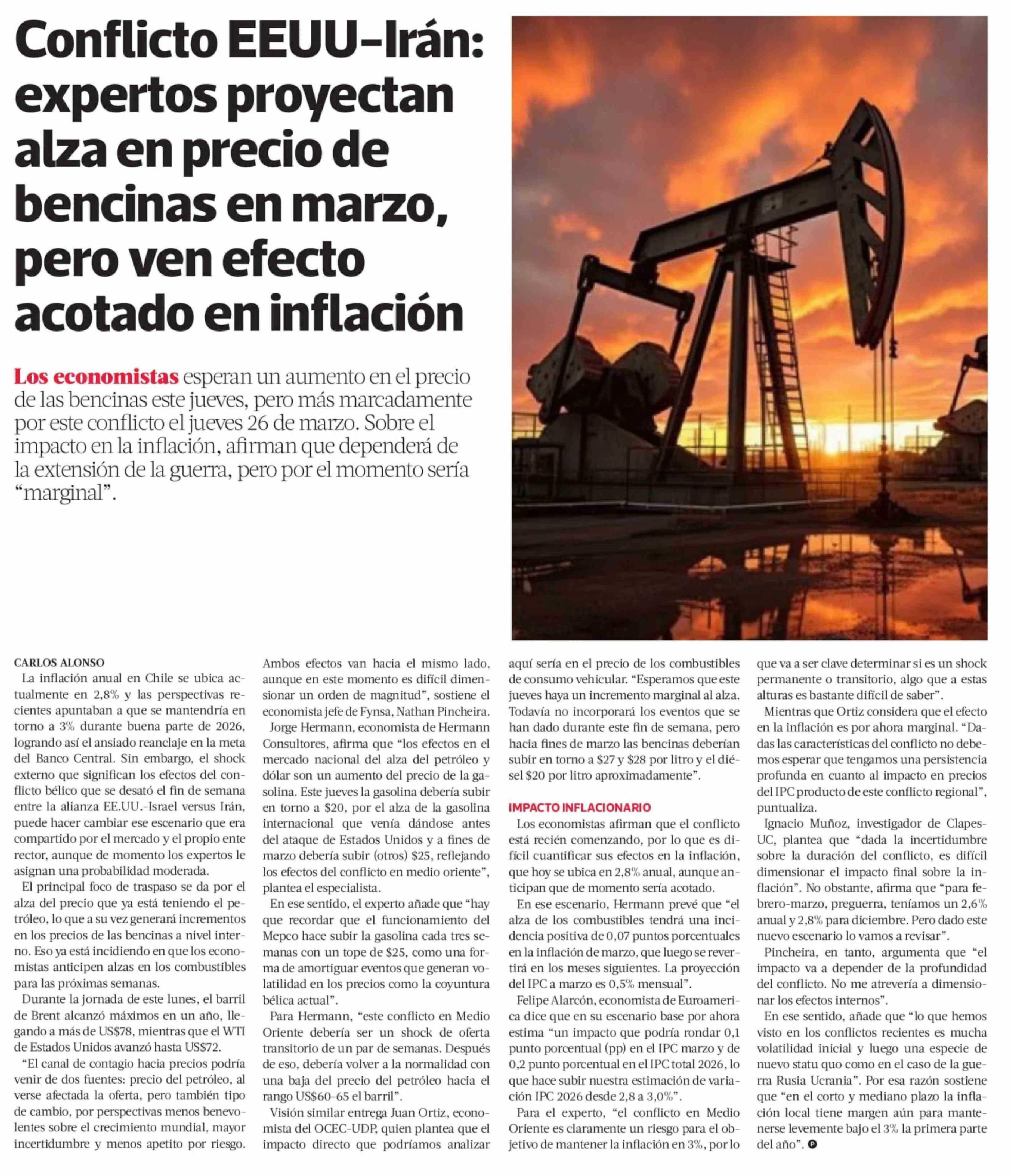Título: Conflicto EEUU-Irán: expertos proyectan alza en precio de bencinas en marzo, pero ven efecto acotado en inflación