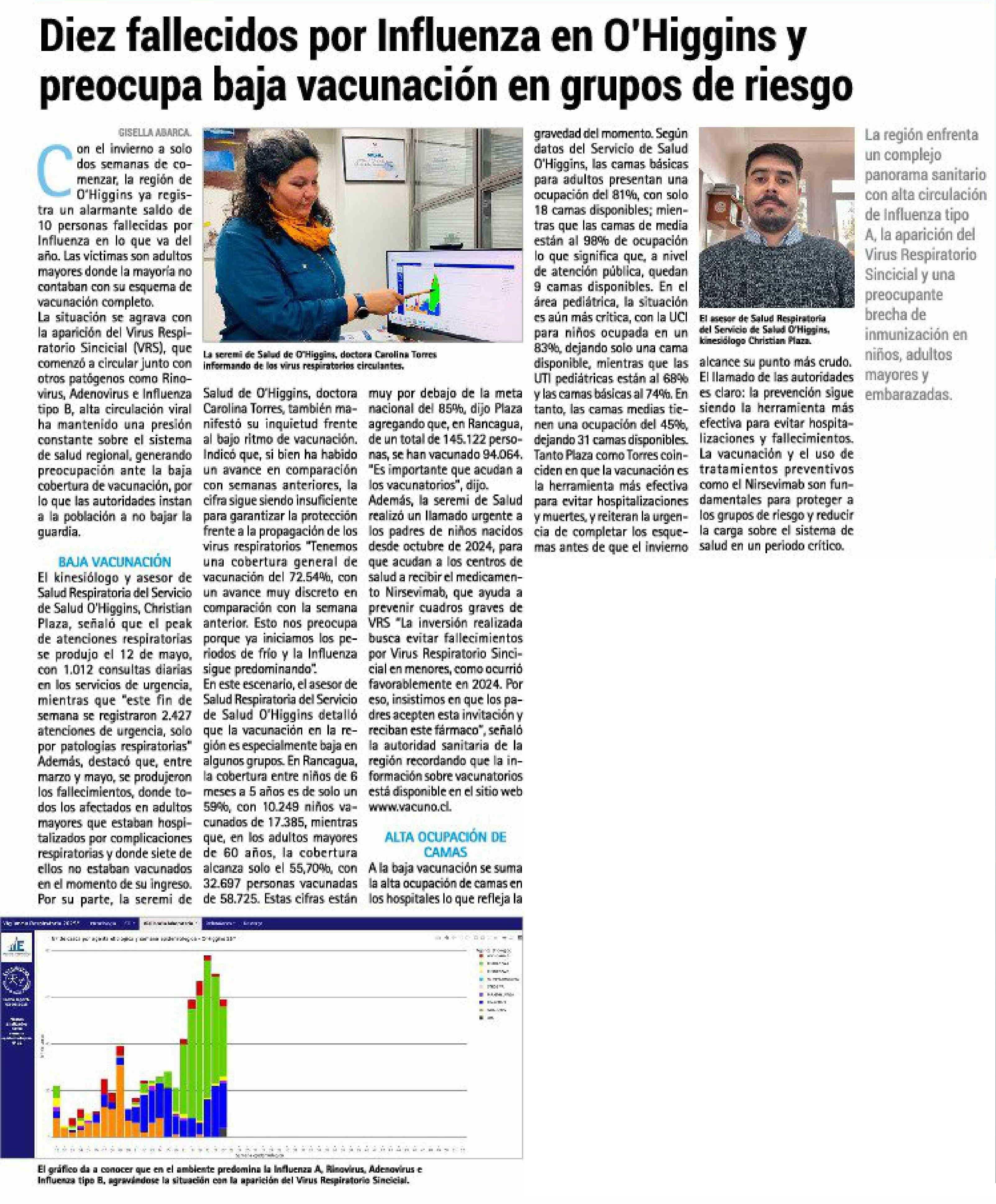Diez fallecidos por Influenza en O'Higgins y preocupa baja vacunación en grupos de riesgo