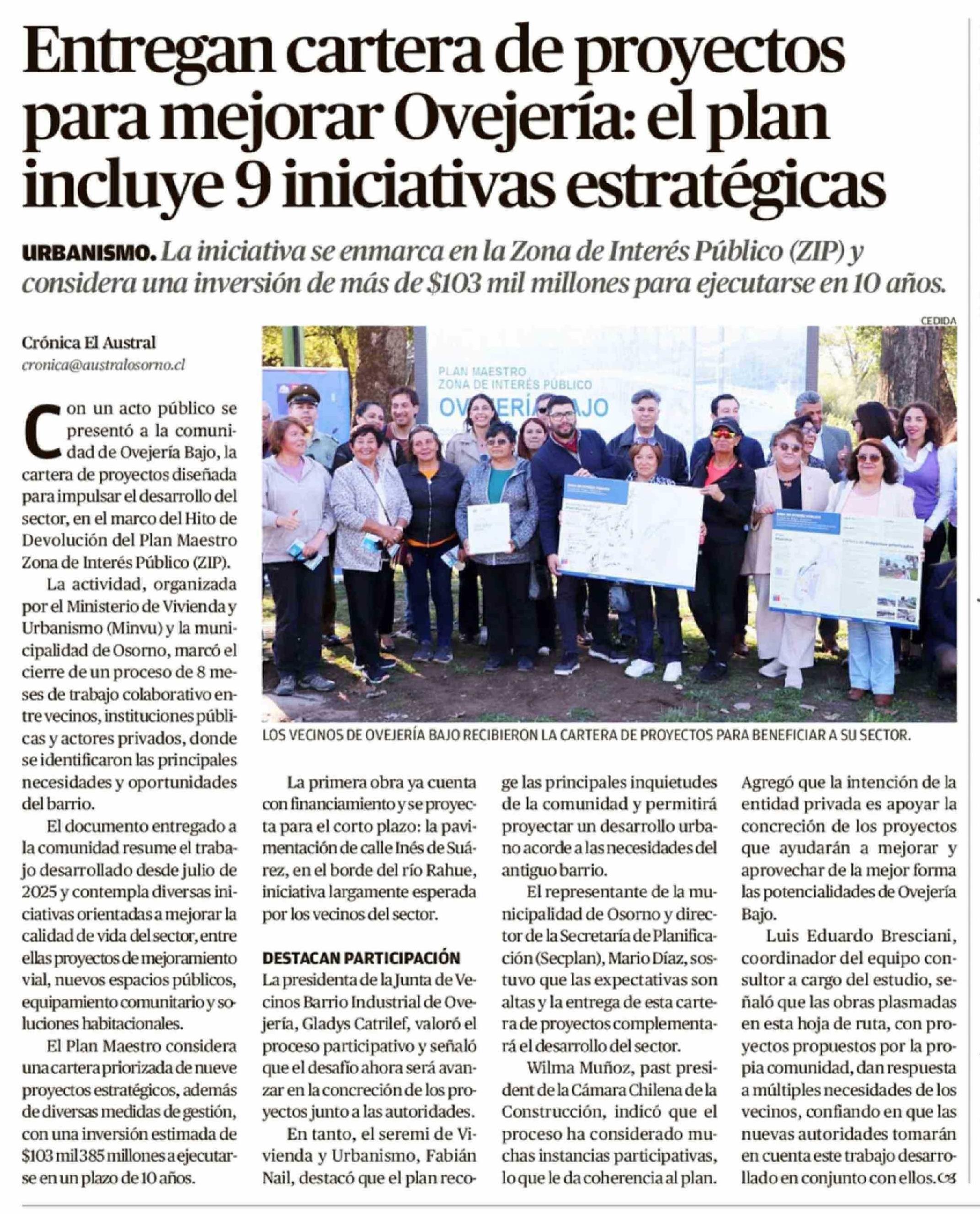 Entregan cartera de proyectos para mejorar Ovejería: el plan incluye 9 iniciativas estratégicas