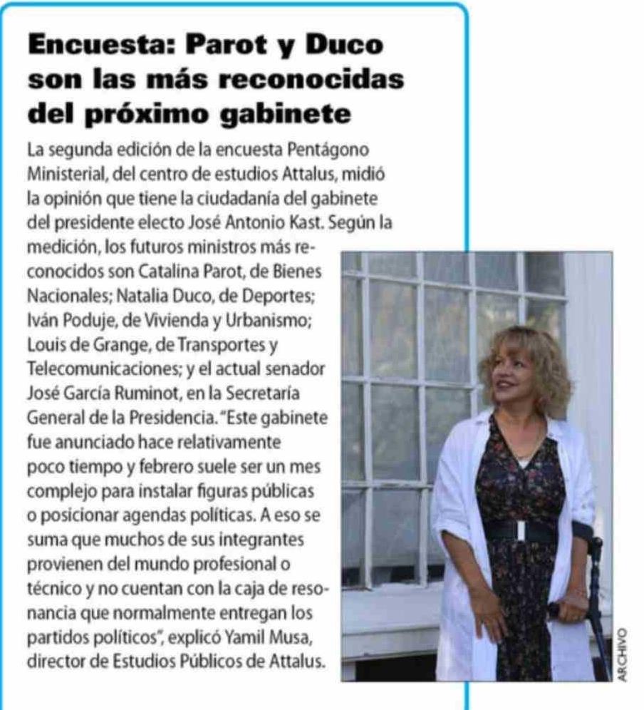 Encuesta: Parot y Duco son las más reconocidas del próximo gabinete