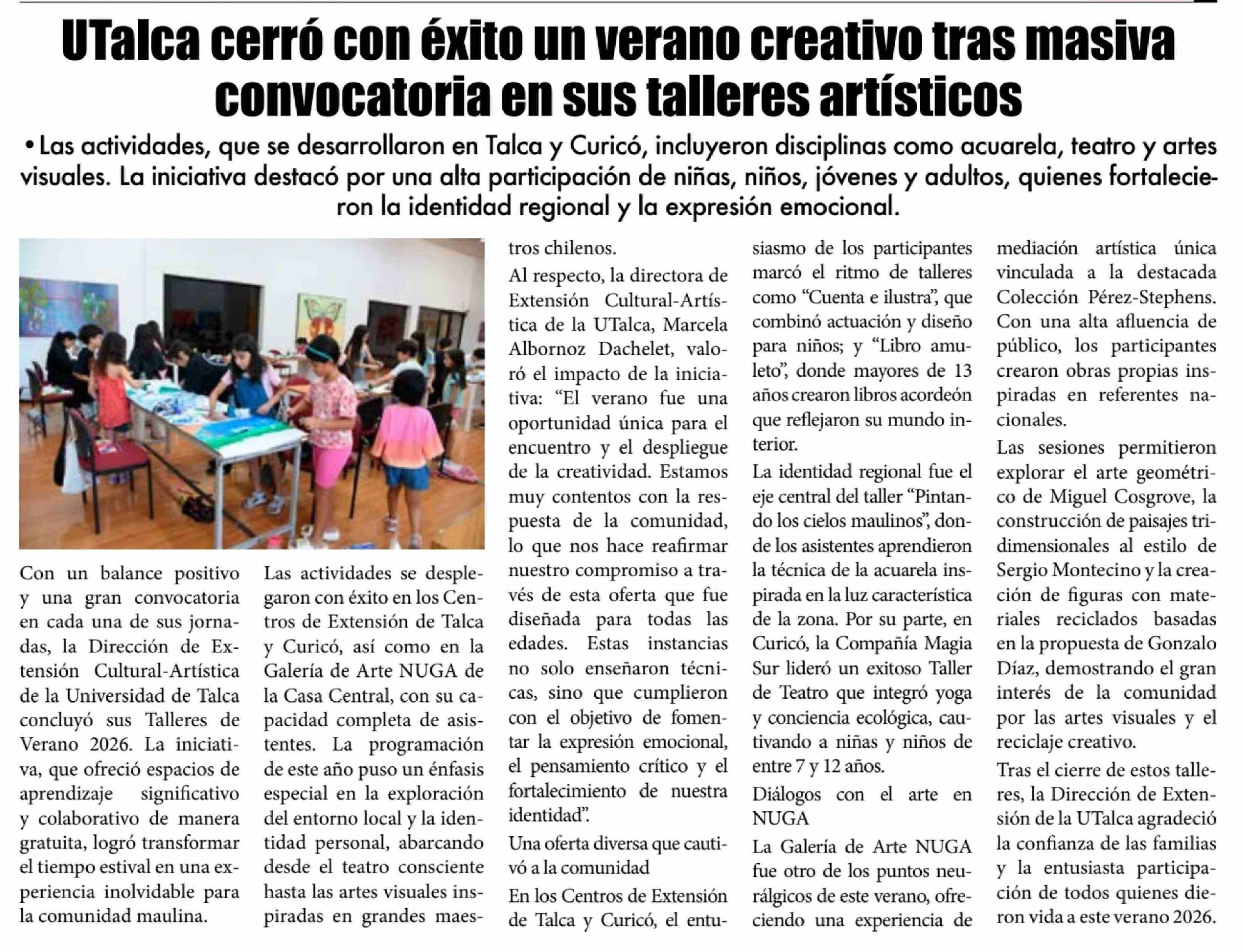 UTalca cerró con éxito un verano creativo tras masiva convocatoria en sus talleres artísticos