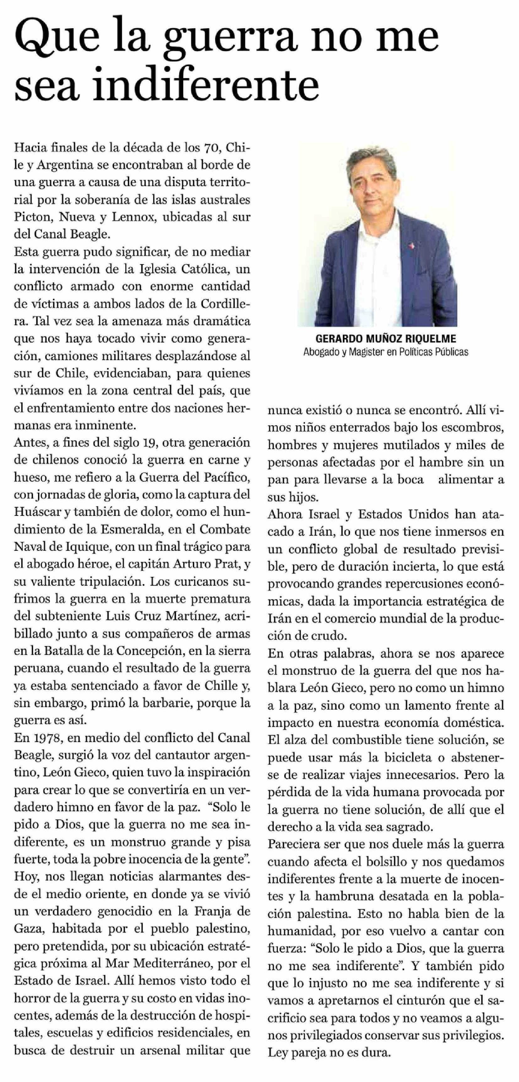 Columnas de Opinión: Que la guerra no me sea indiferente