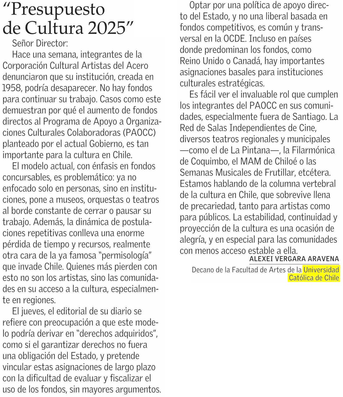 “Presupuesto de Cultura 2025”