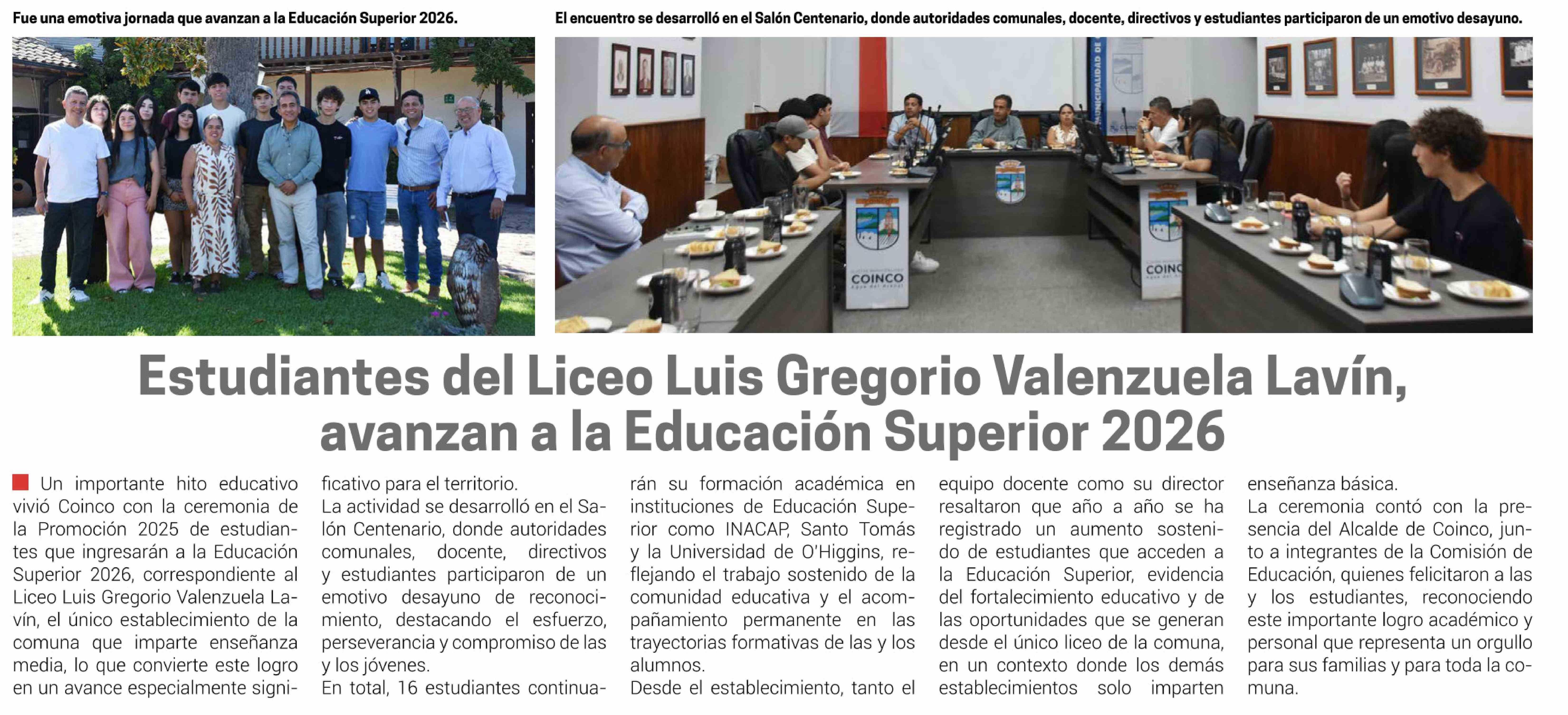 Estudiantes del Liceo Luis Gregorio Valenzuela Lavín, avanzan a la Educación Superior 2026