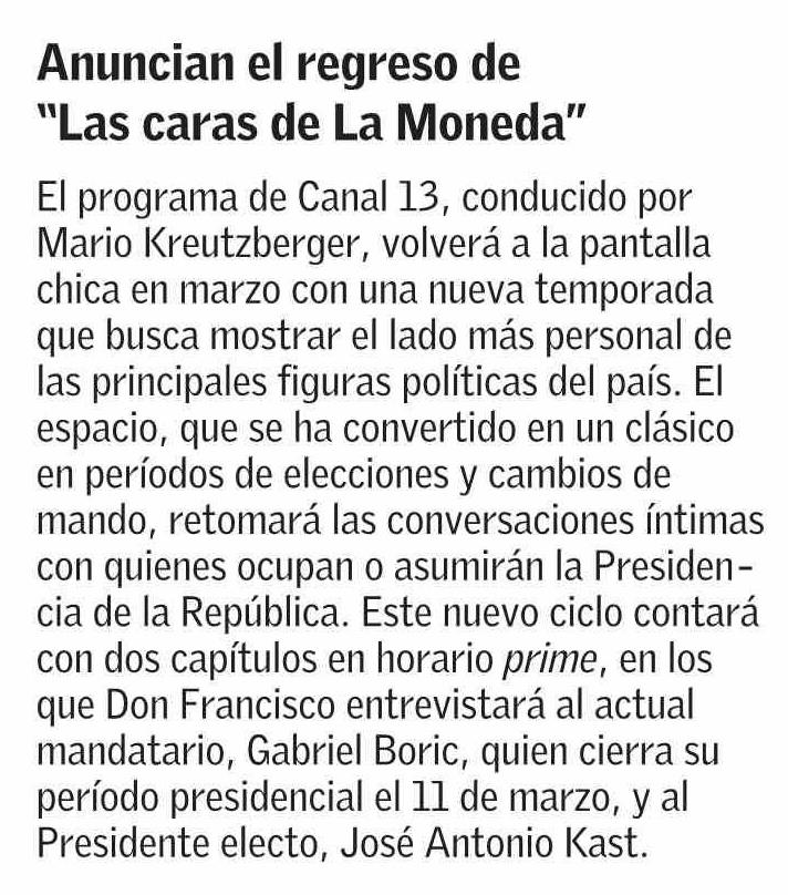 Anuncian el regreso de “Las caras de La Moneda”