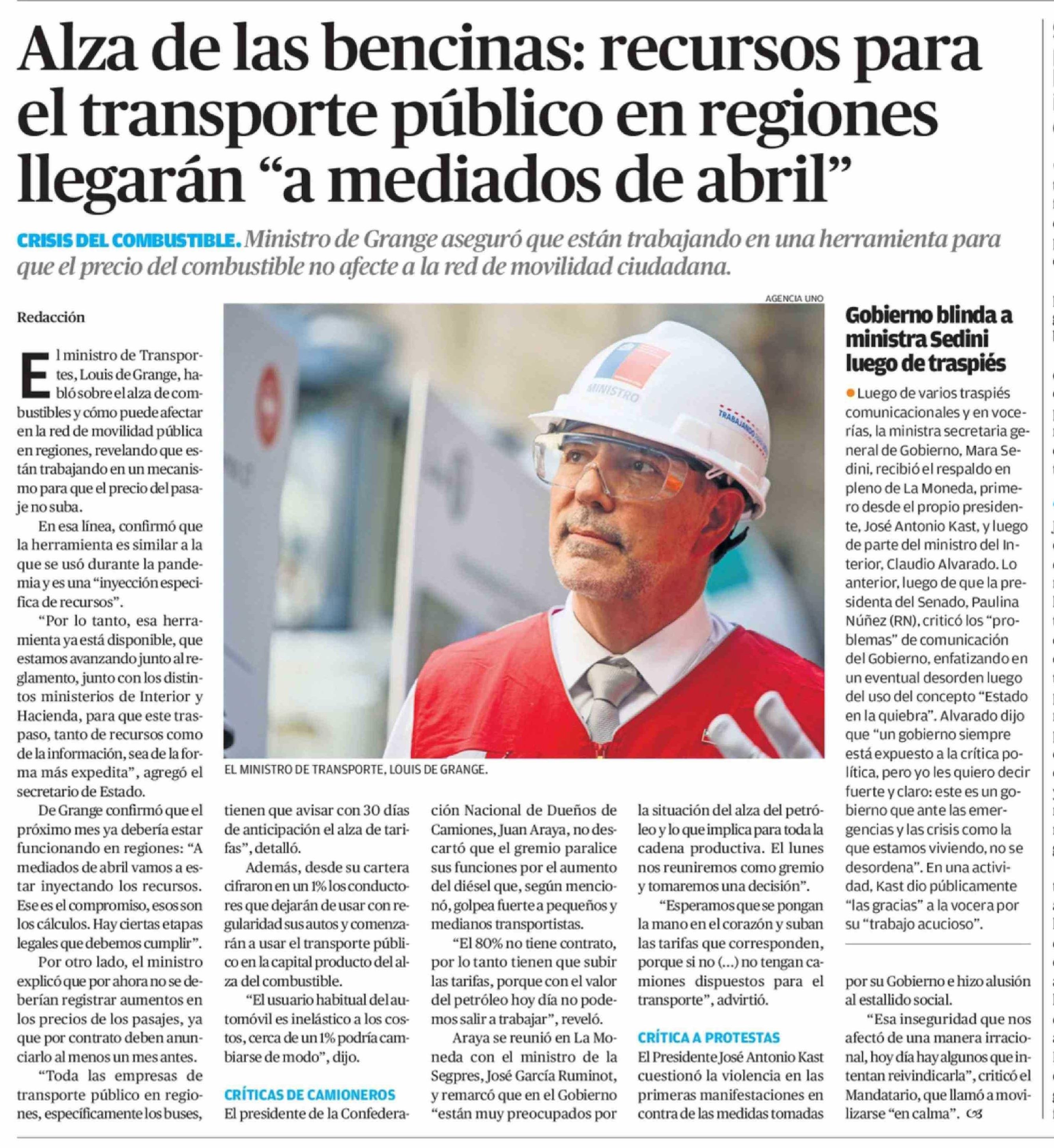 Alza de las bencinas: recursos para el transporte público en regiones llegarán "a mediados de abril"