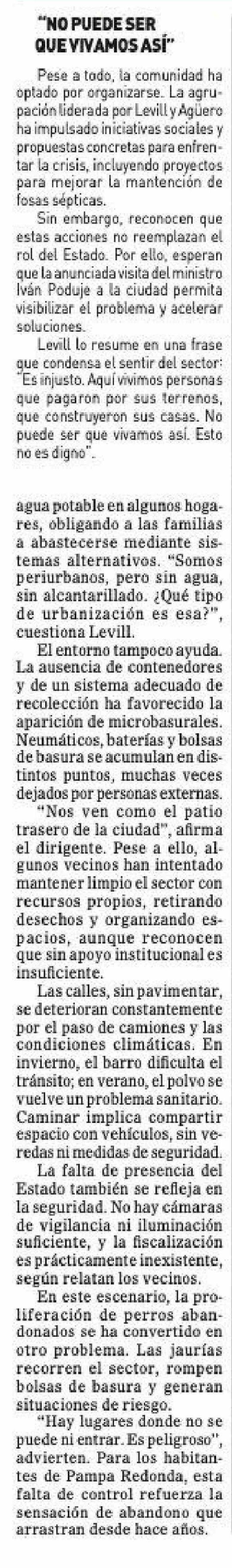 Vecinos de Pampa Redonda acusan ser "el patio trasero de la ciudad": están cansados del barro y la basura