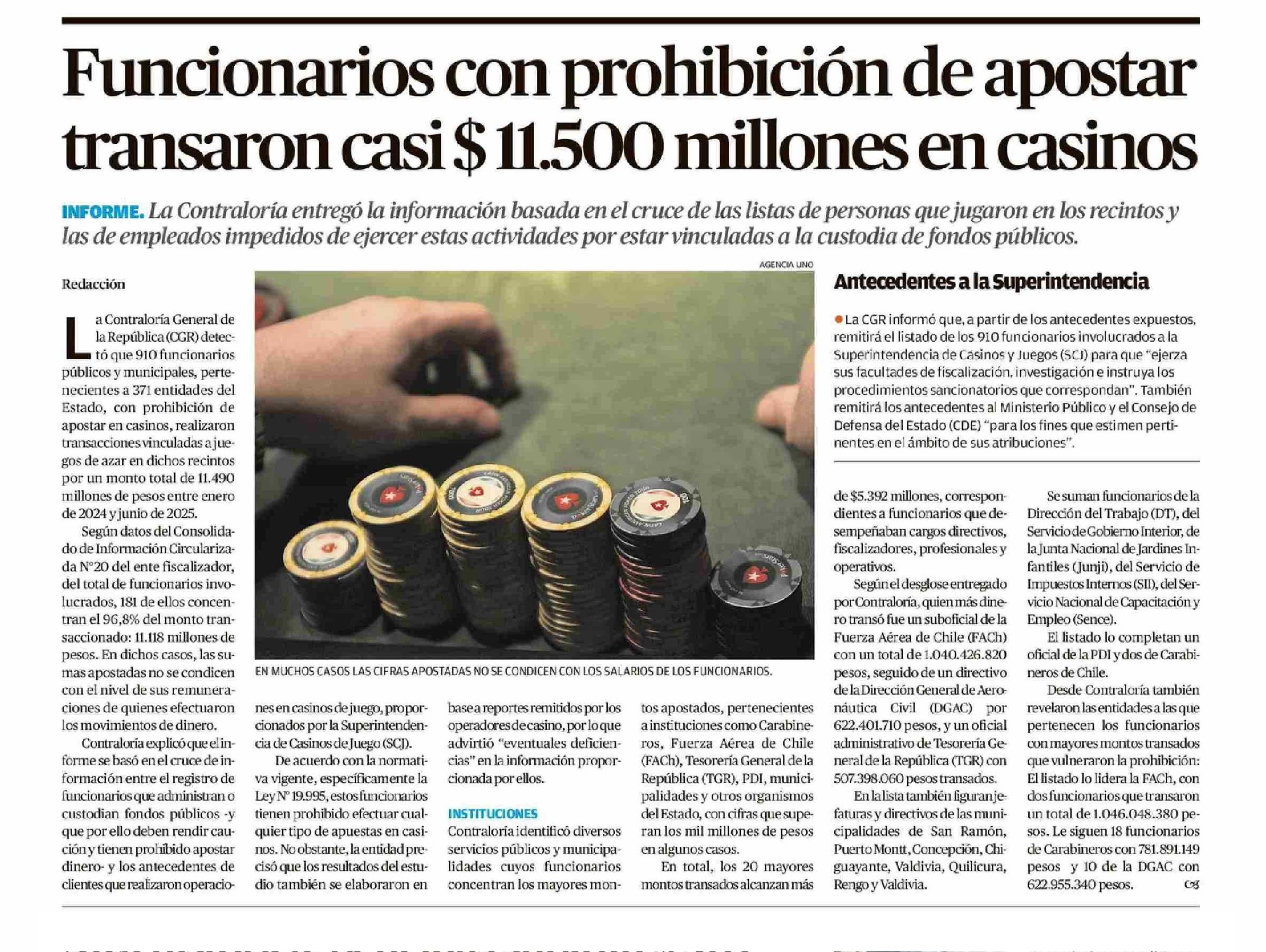 Funcionarios con prohibición de apostar transaron casi $ 11.500 millones en casinos