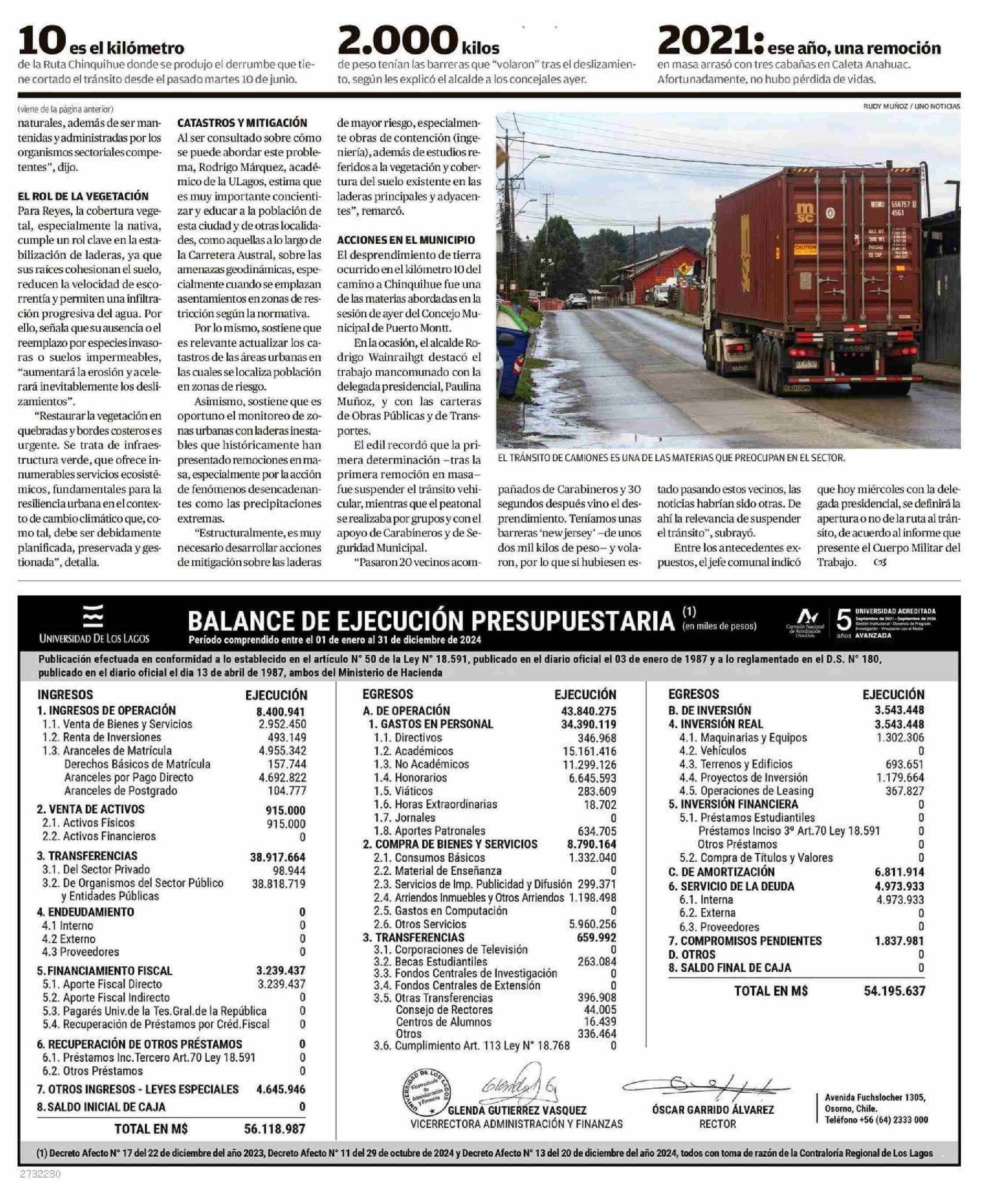 Suelo inestable, la lluvia y paso de remoción en masa en Chinquihue camiones: el cóctel que explica la