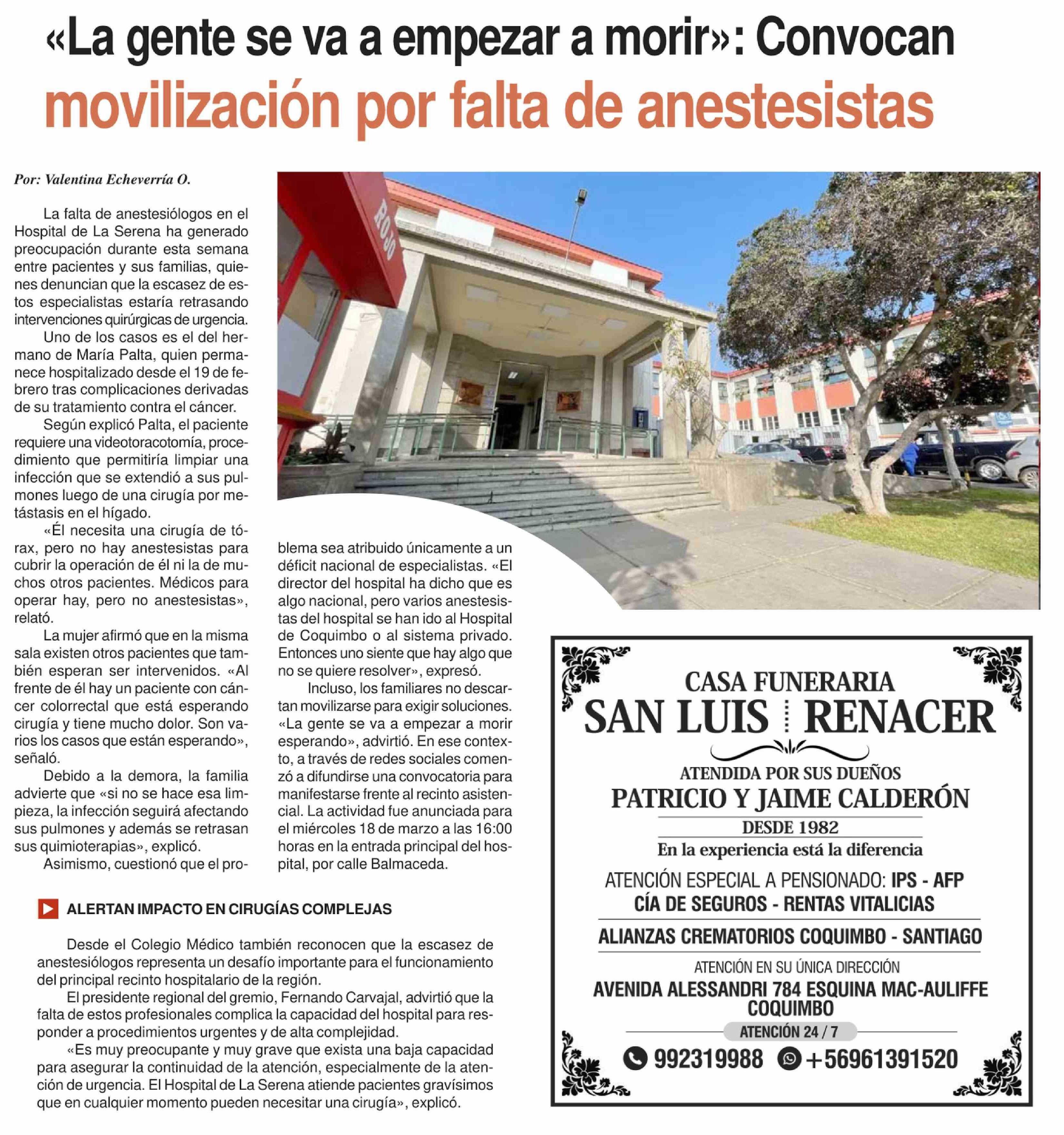 «La gente se va a empezar a morir»: Convocan movilización por falta de anestesistas