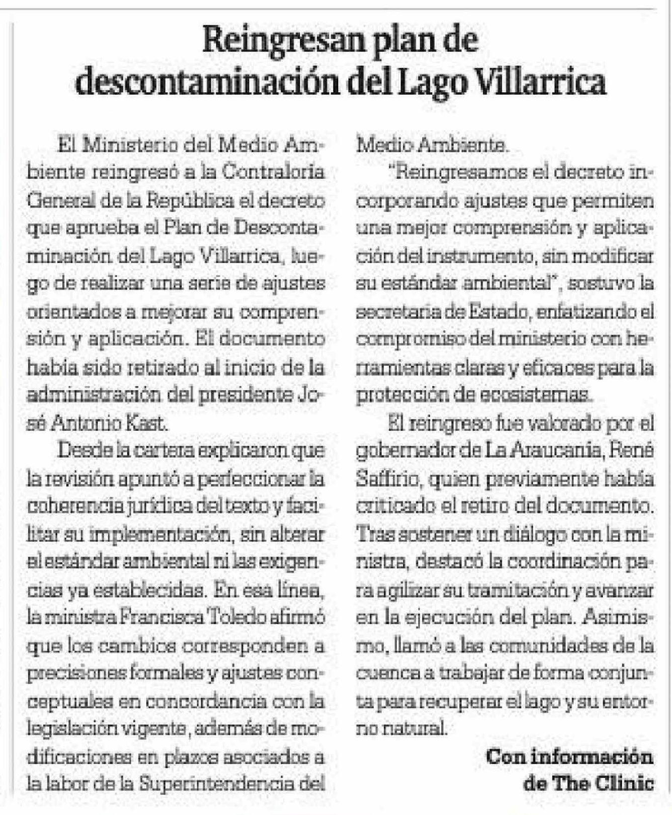 Reingresan plan de descontaminación del Lago Villarrica