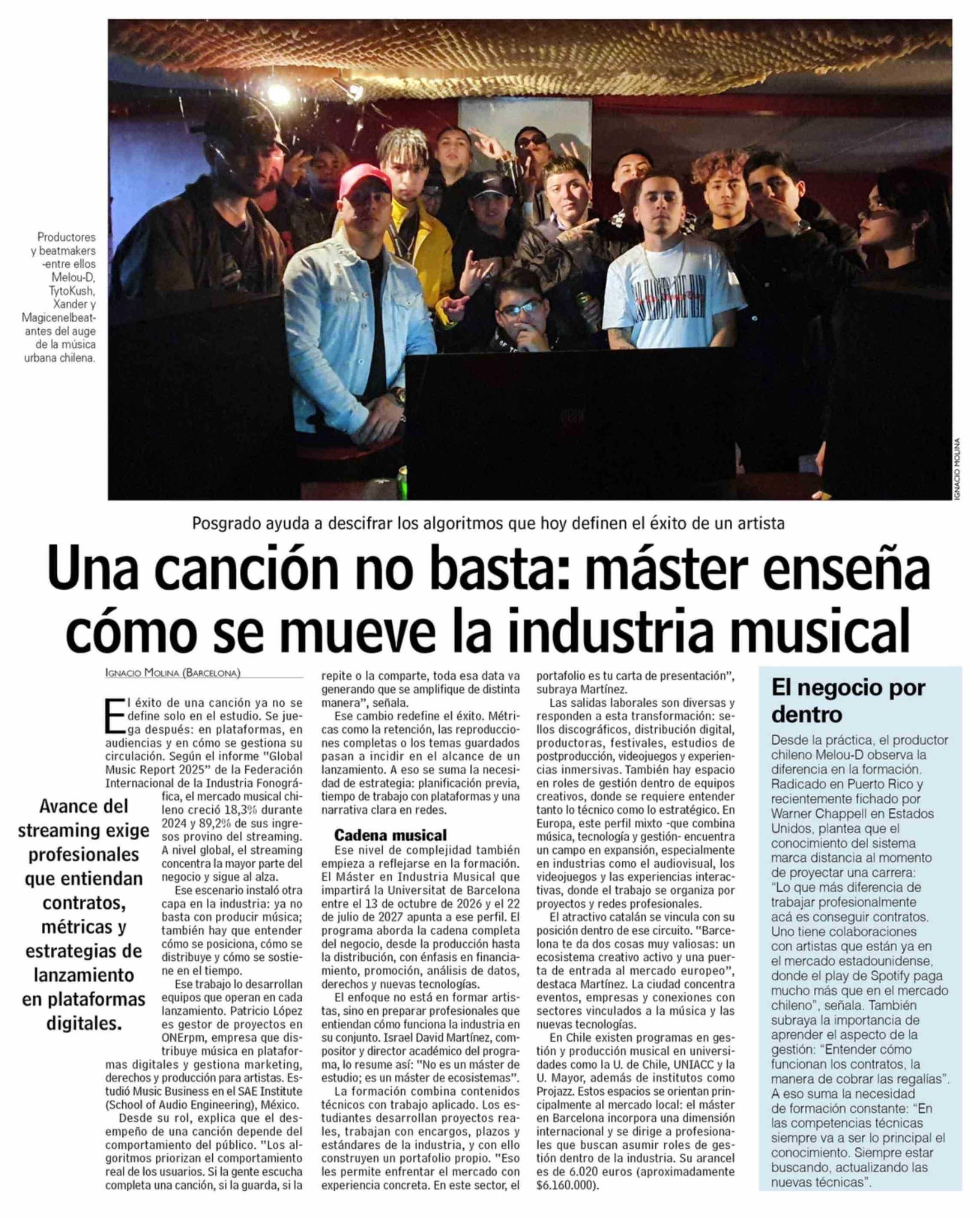 Una canción no basta: máster enseña cómo se mueve la industria musical
