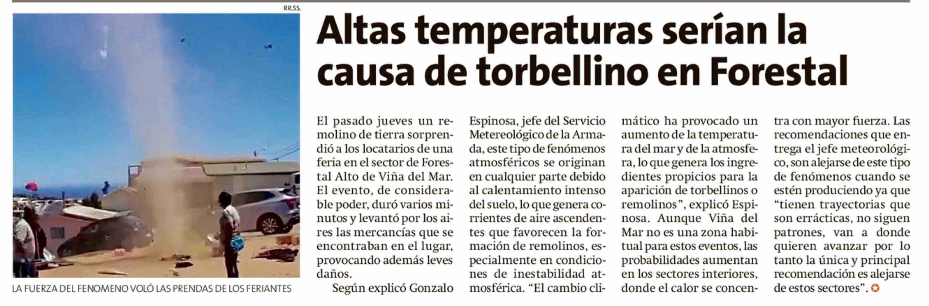 Altas temperaturas serían la causa de torbellino en Forestal