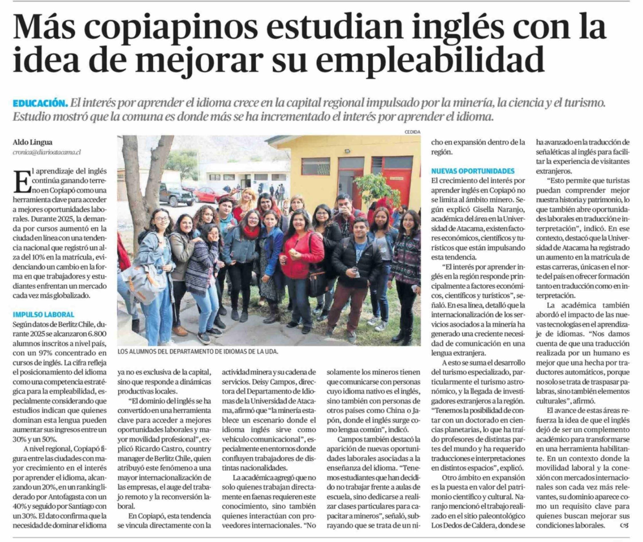 Título: Más copiapinos estudian inglés con la idea de mejorar su empleabilidad