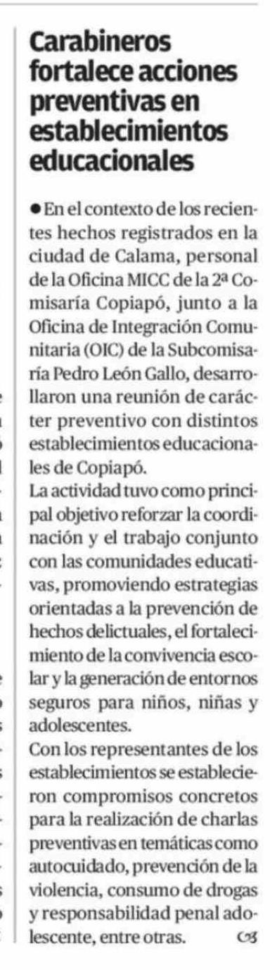Carabineros fortalece acciones preventivas en establecimientos educacionales