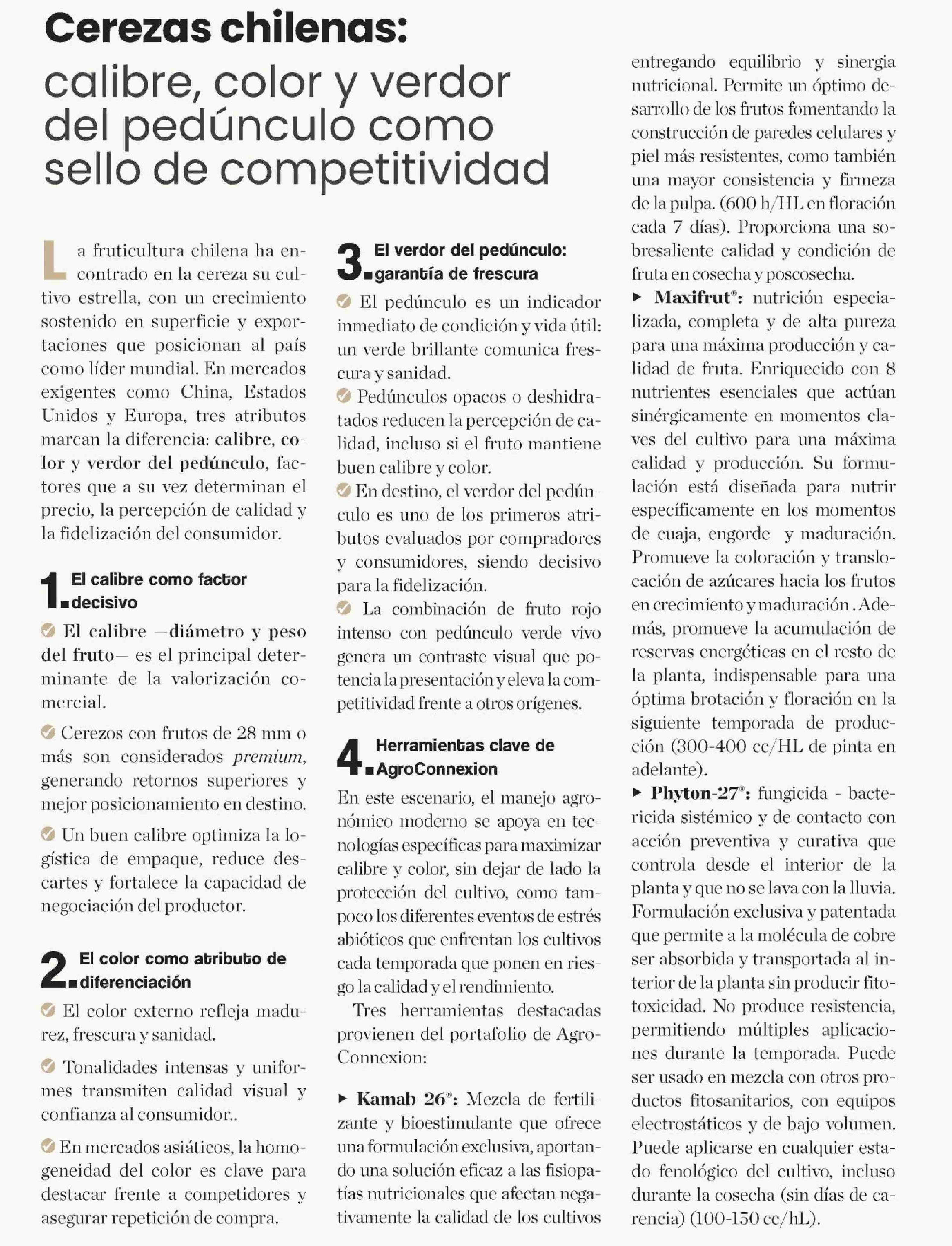 Cerezas chilenas: calibre, color y verdor del pedúnculo como sello de competitividad