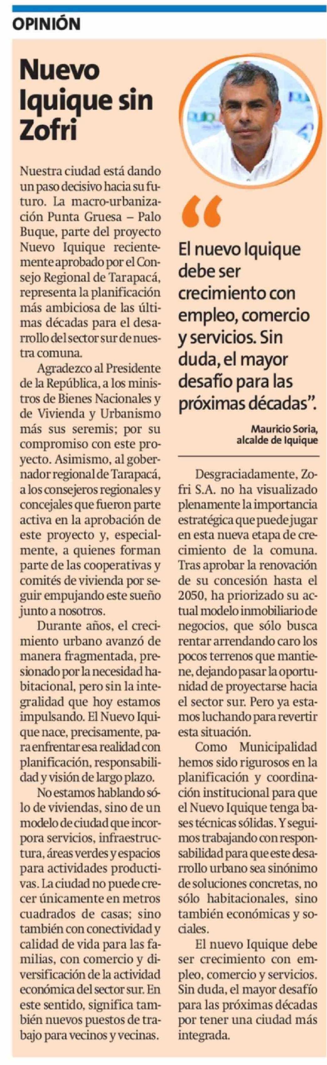 Columnas de Opinión: Nuevo Iquique sin Zofri
