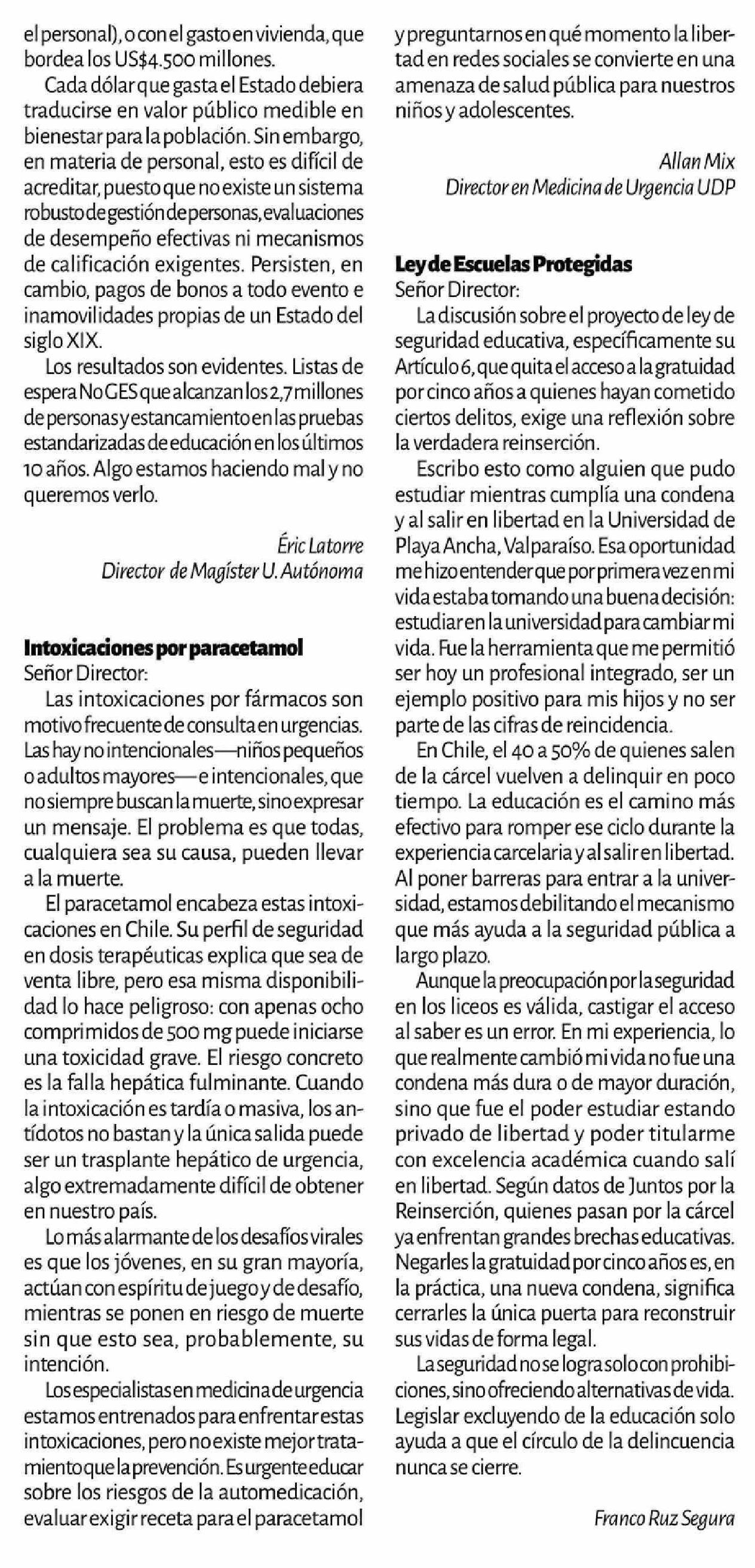 Cartas: Intoxicaciones por paracetamol