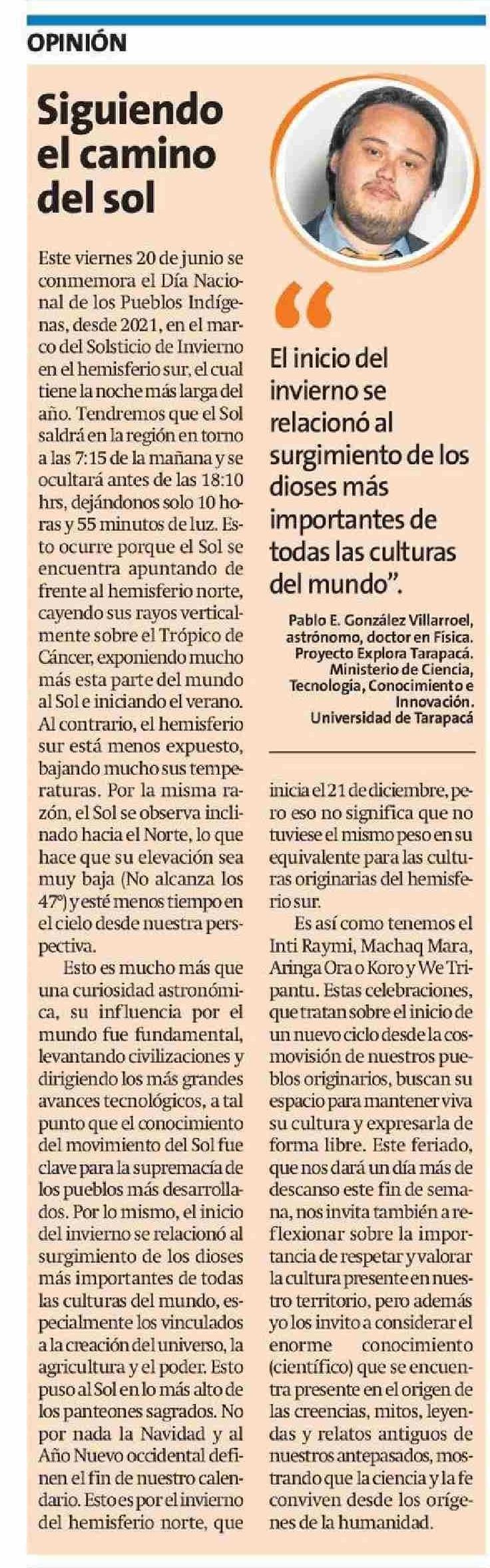 Columnas de Opinión: Siguiendo del sol el camino