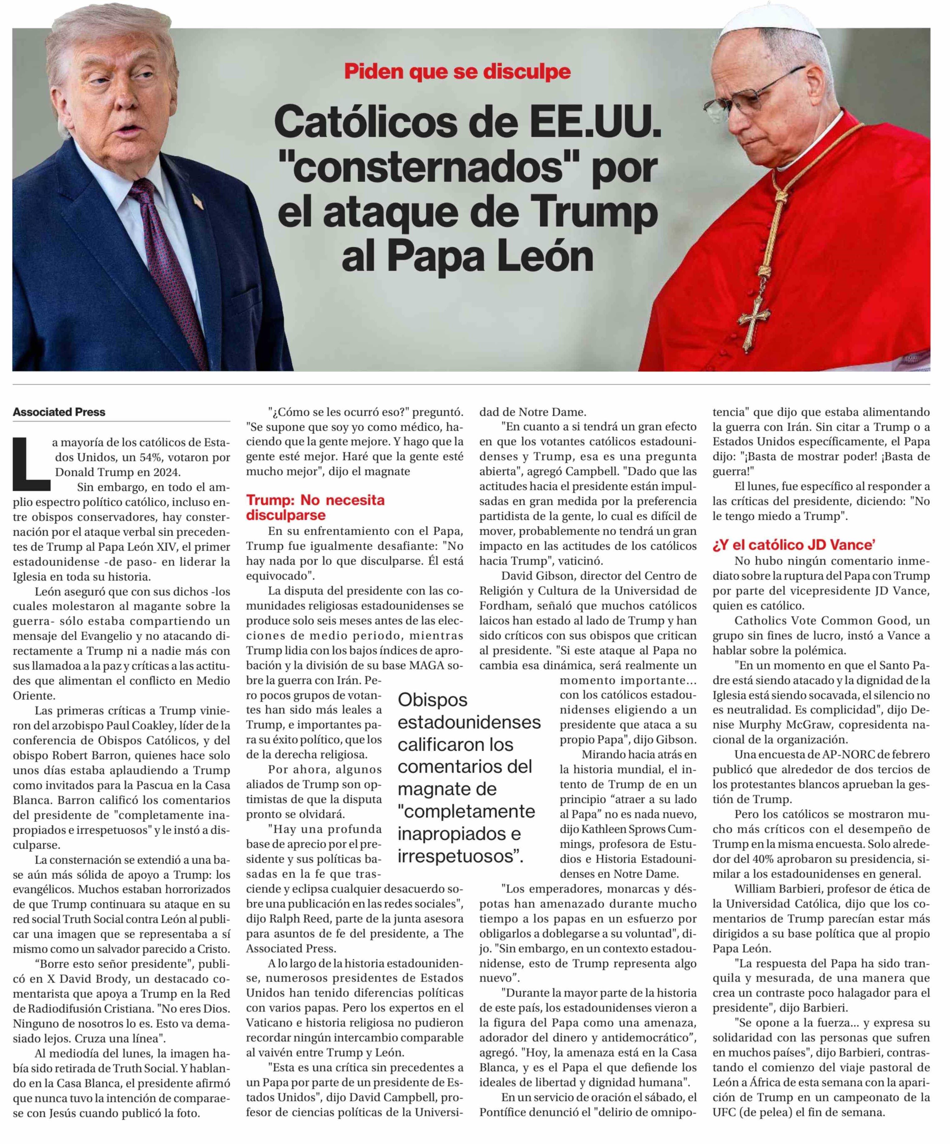 Católicos de EE.UU. "consternados" por el ataque de Trump al Papa León
