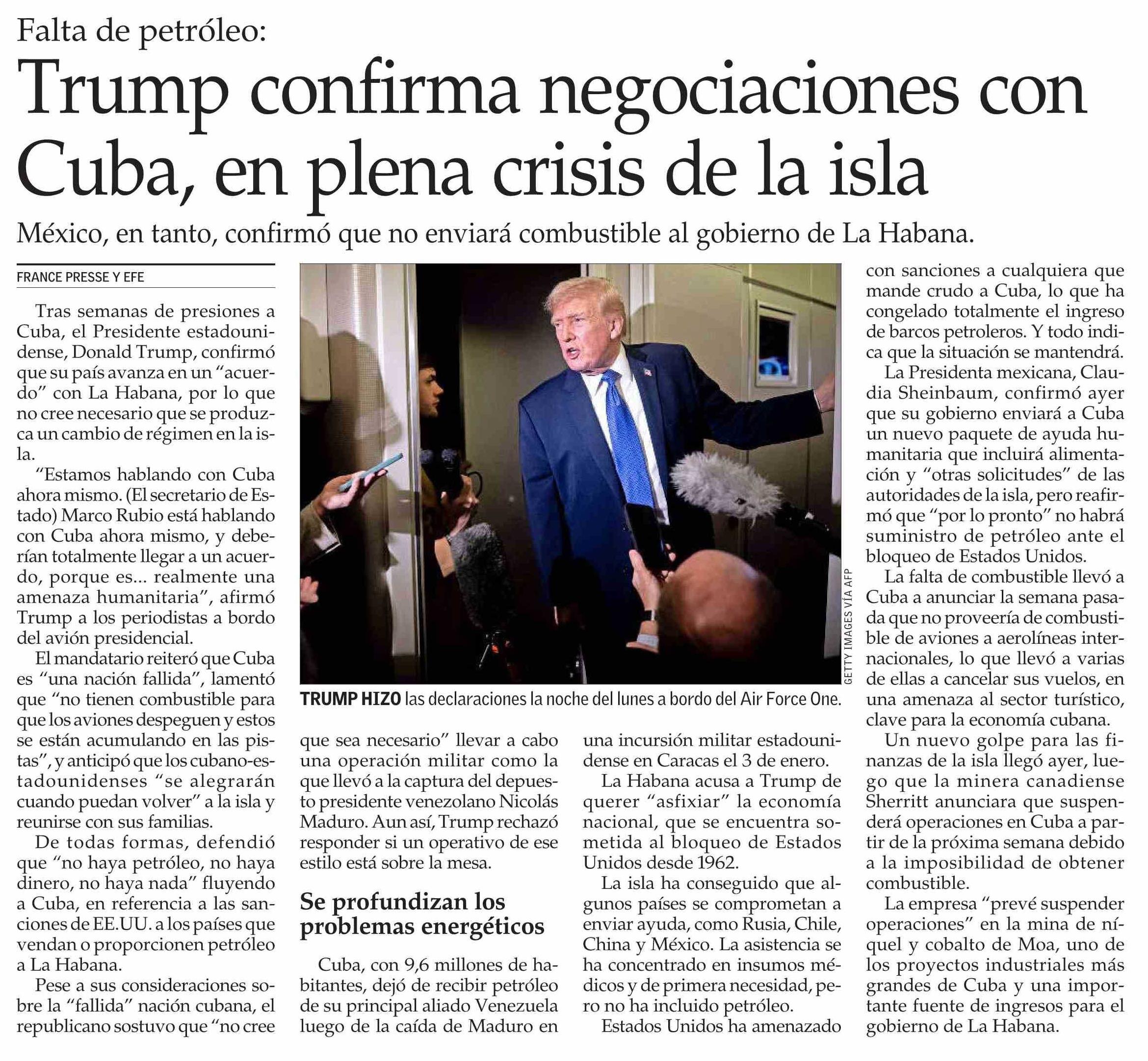 Trump confirma negociaciones con Cuba, en plena crisis de la isla