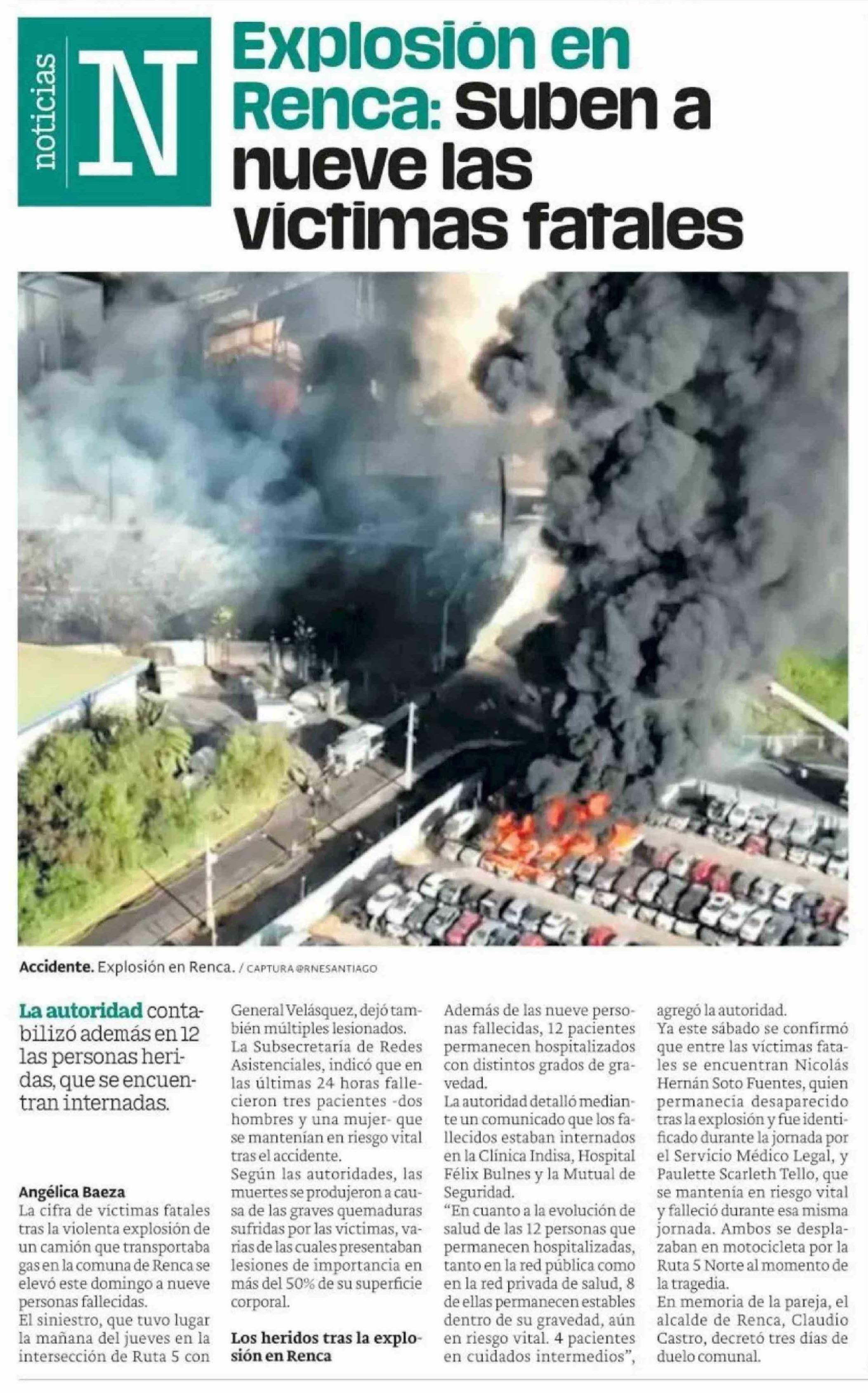 Explosión en Renca: Suben a nueve las victimas fatales