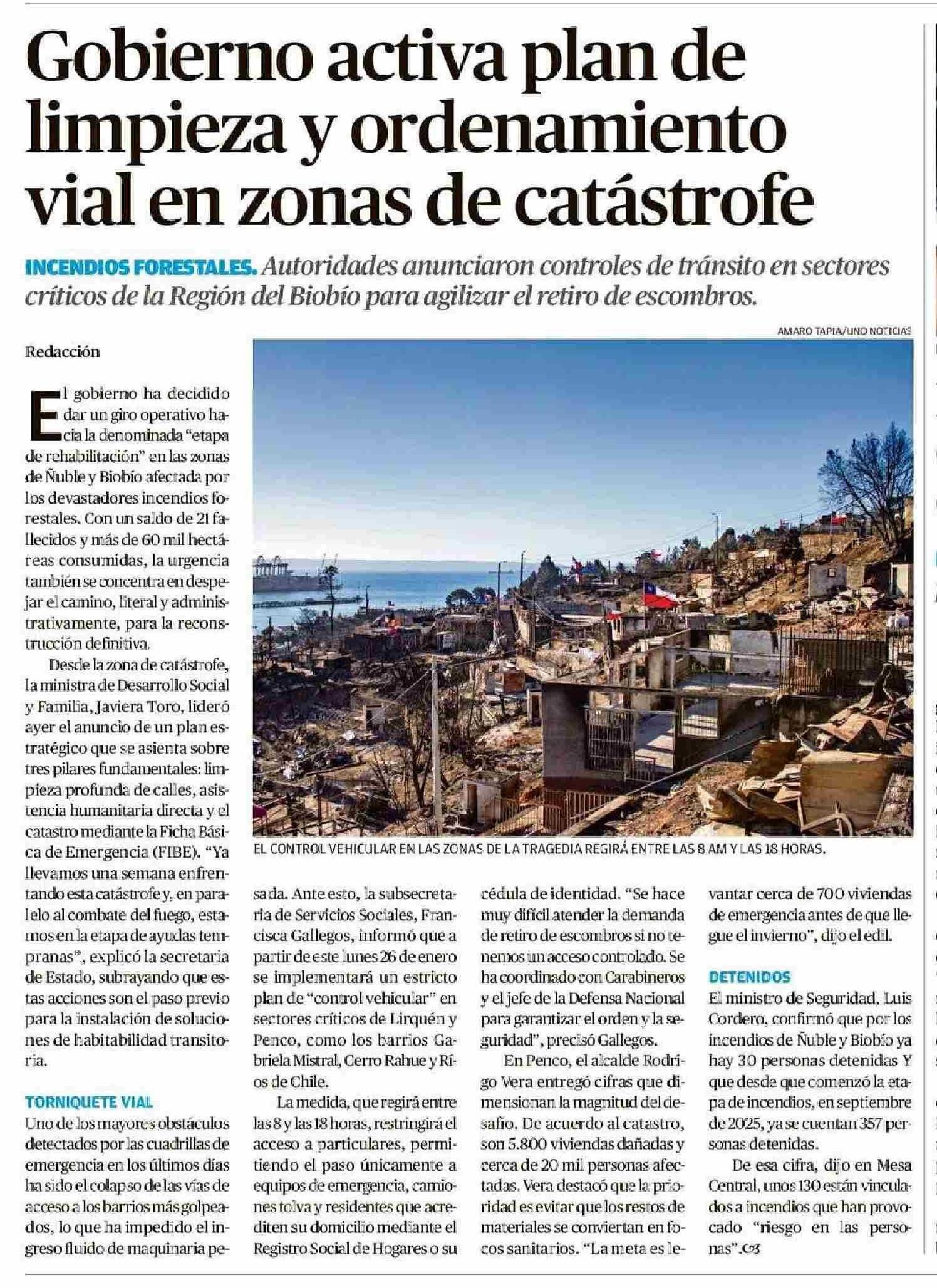 Gobierno activa plan de limpieza y ordenamiento vial en zonas de catástrofe