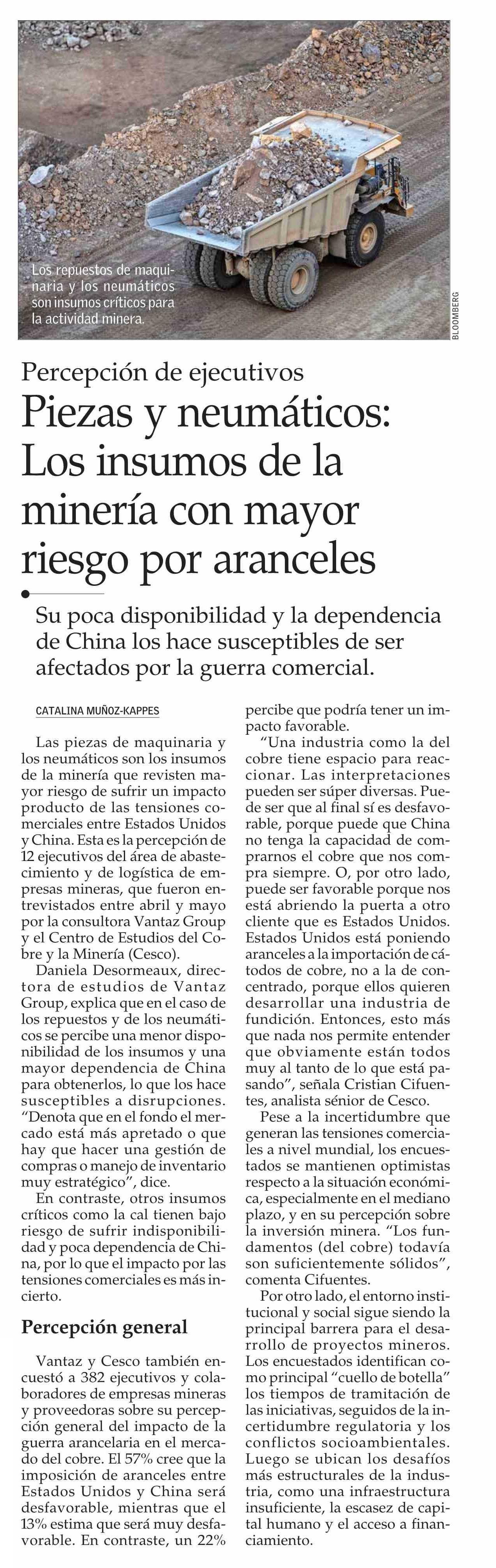 Piezas y neumáticos: Los insumos de la minería con mayor riesgo por aranceles
