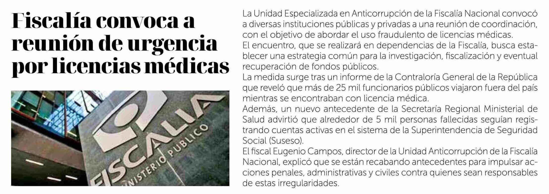 Fiscalía convoca a reunión de urgencia por licencias médicas