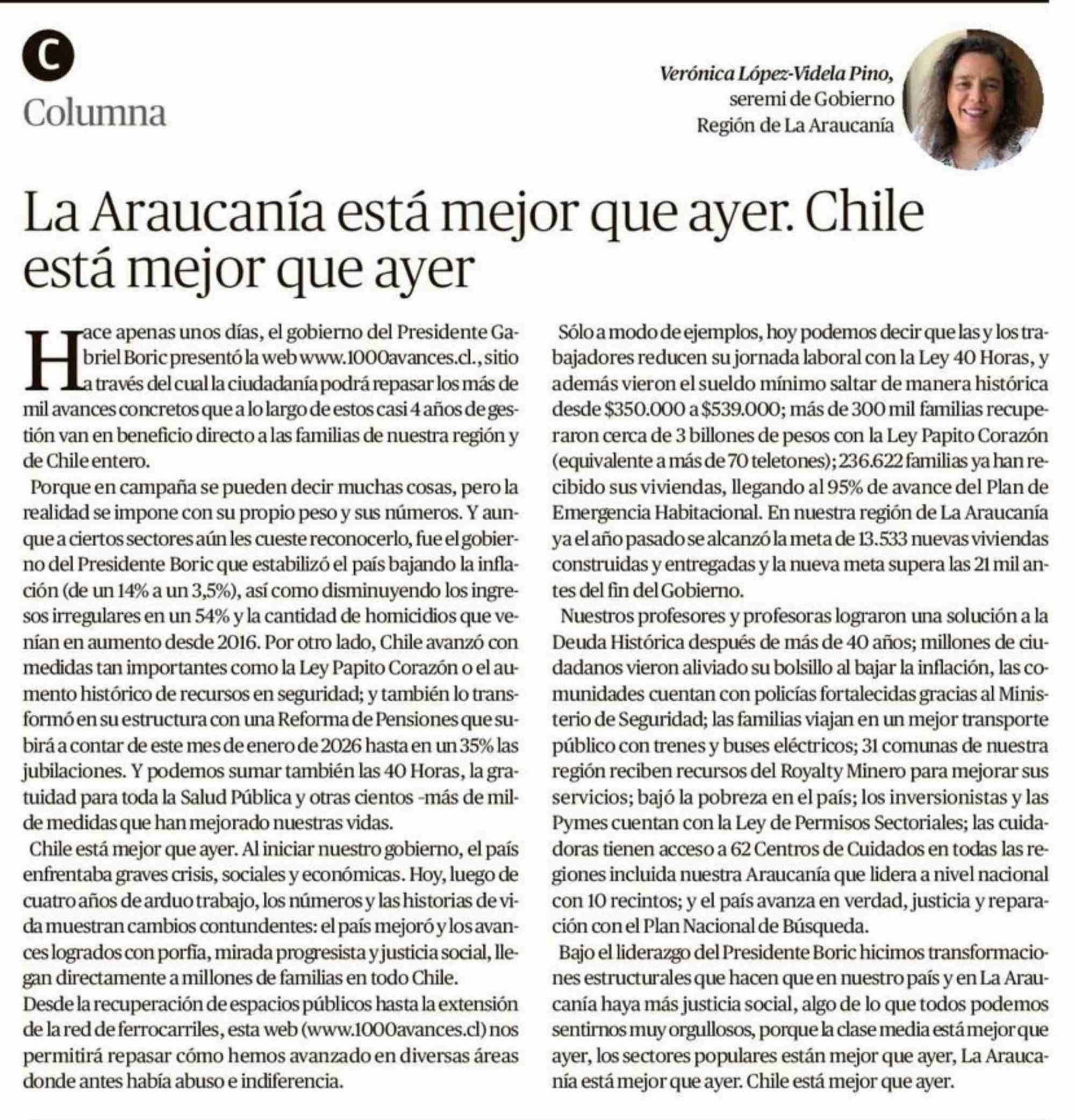 Columnas de Opinión: La Araucanía está mejor que ayer. Chile está mejor que ayer