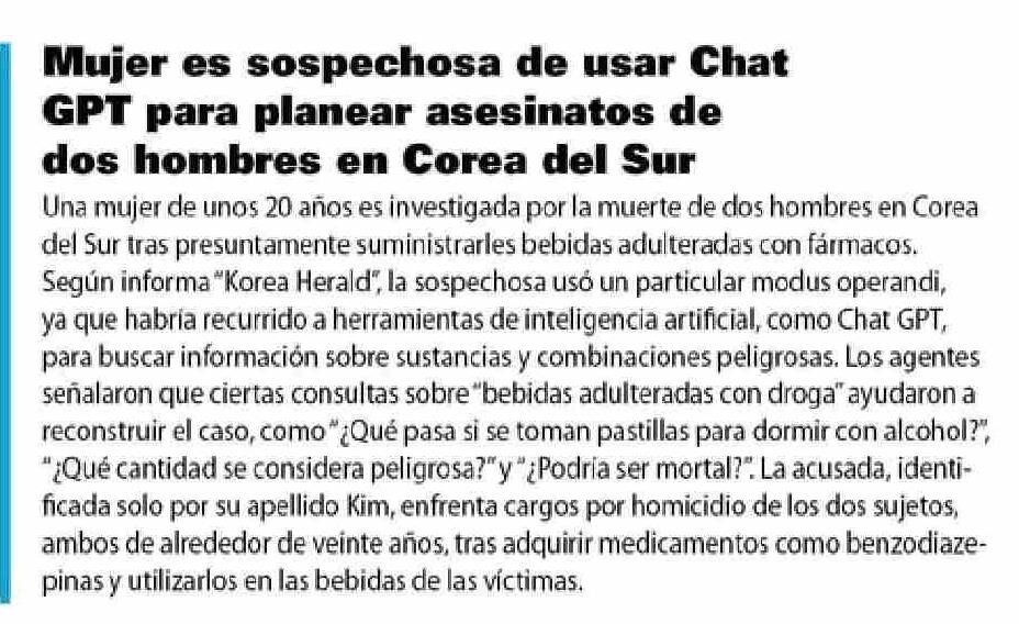 Mujer es sospechosa de usar Chat GPT para planear asesinatos de dos hombres en Corea del Sur
