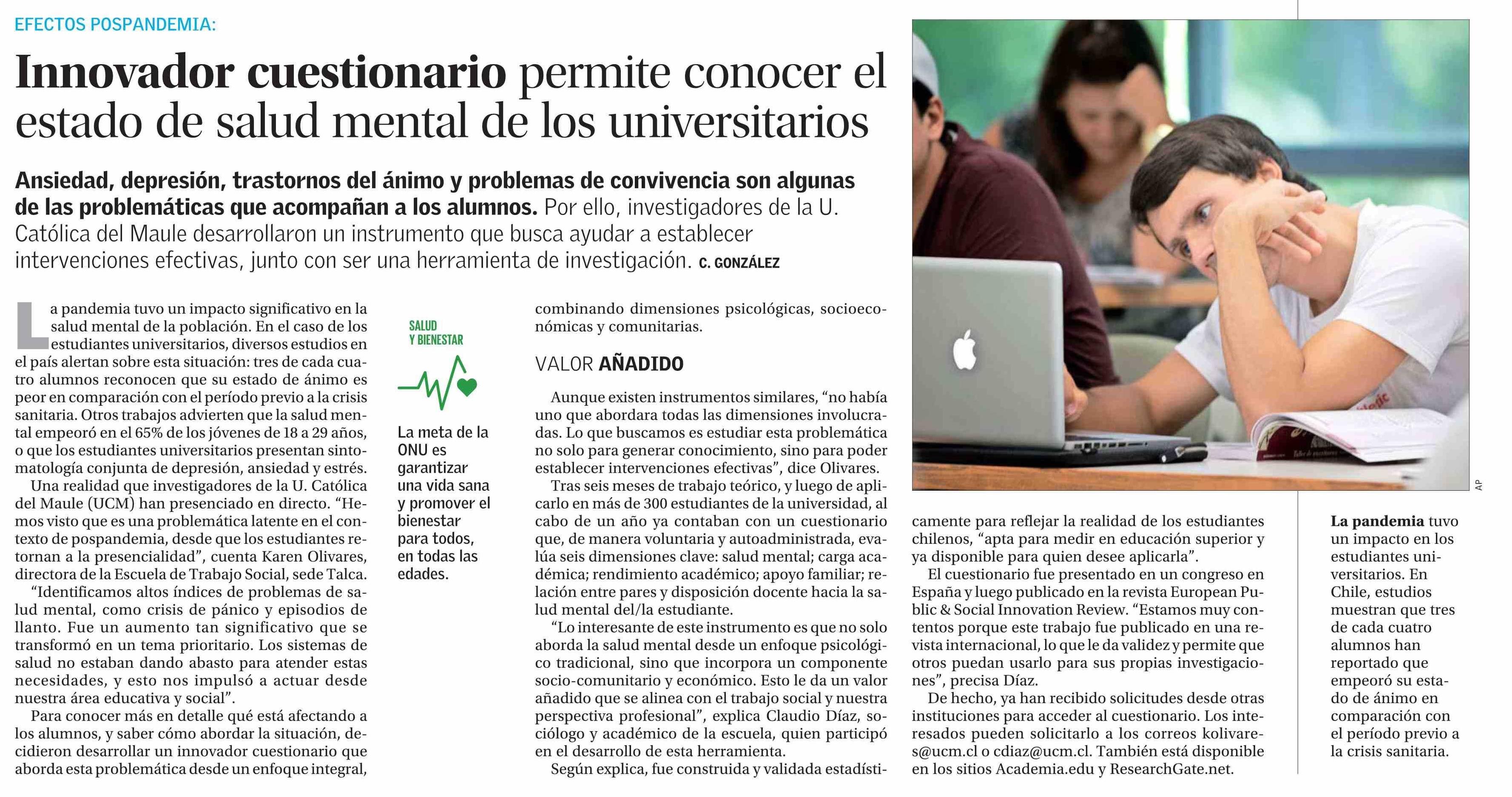 Innovador cuestionario permite conocer el estado de salud mental de los universitarios