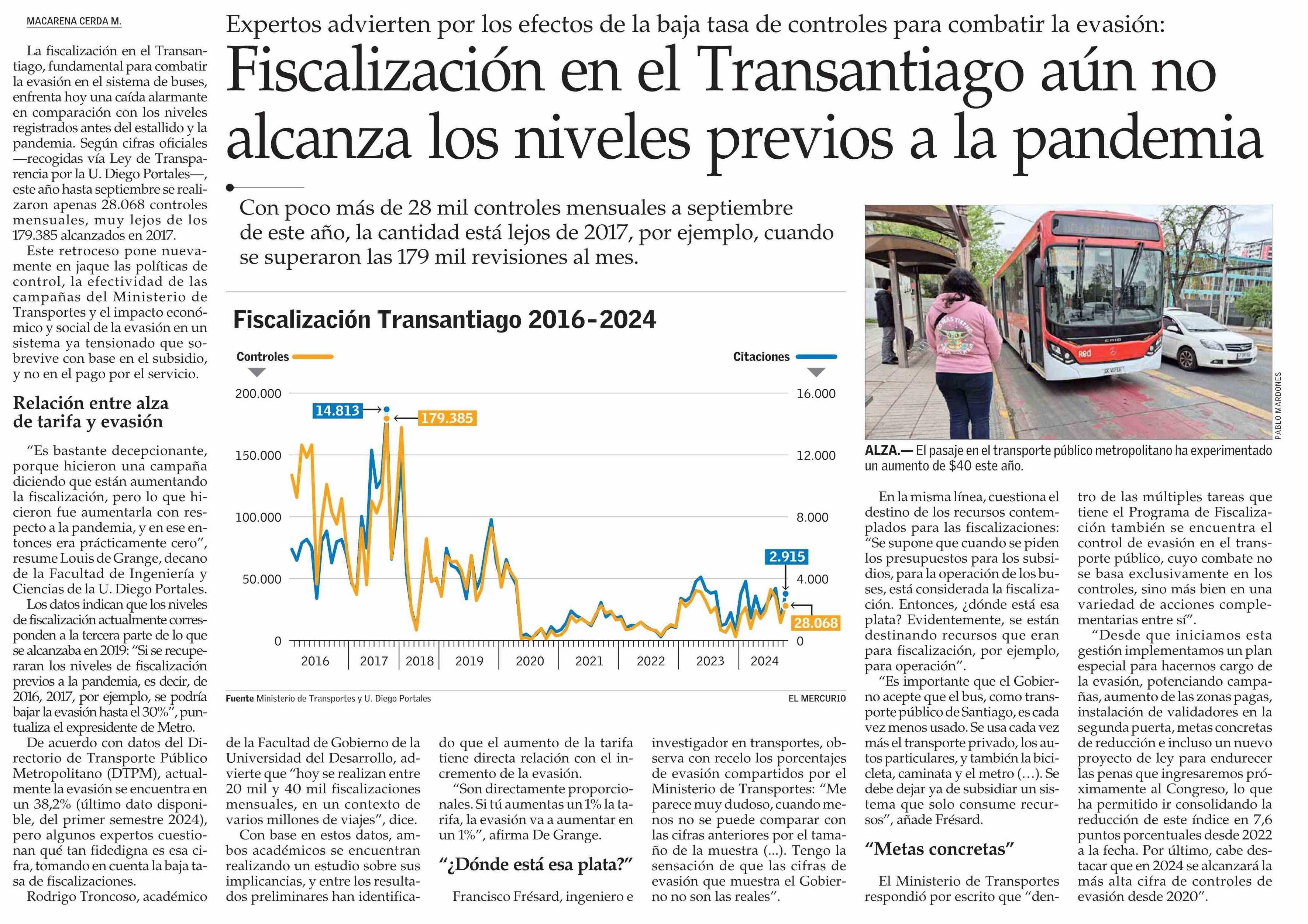 Fiscalización en el Transantiago aún no alcanza los niveles previos a la pandemia