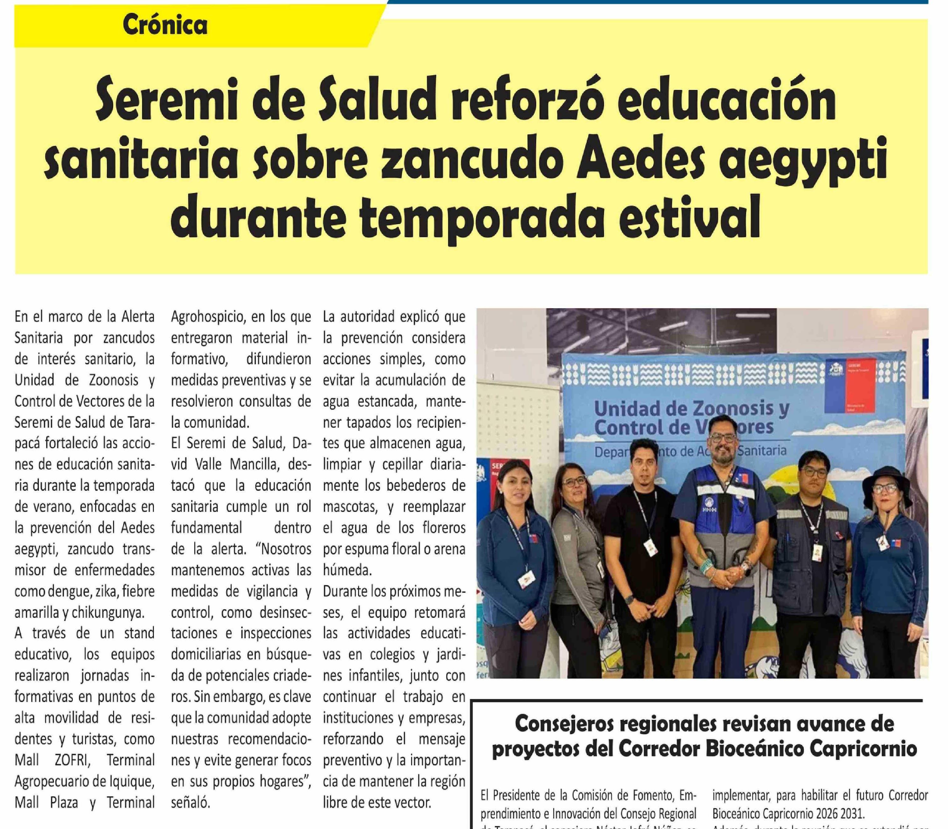 Seremi de Salud reforzó educación sanitaria sobre zancudo Aedes aegypti durante temporada estival