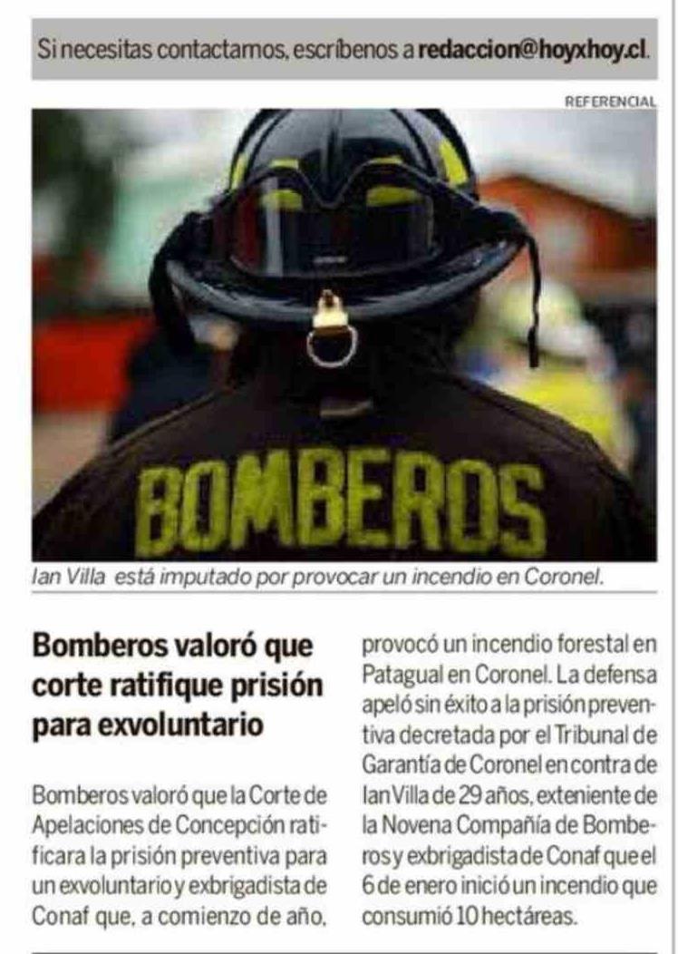 Bomberos valoró que corte ratifique prisión para exvoluntario