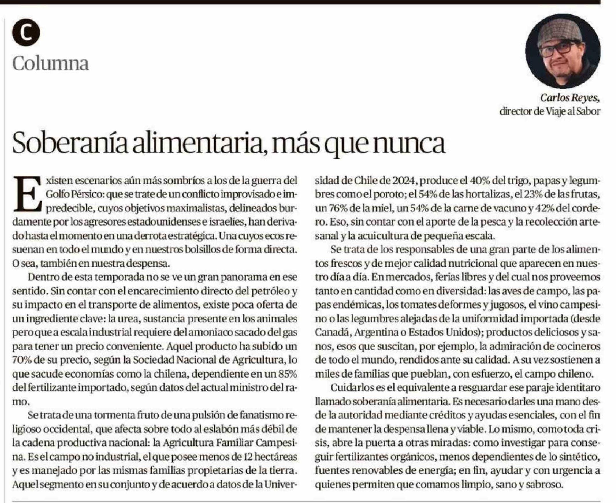 Columnas de Opinión: Soberanía alimentaria, más que nunca
